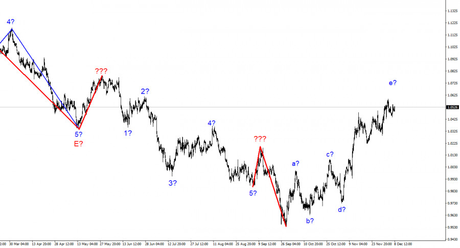 Анализ EUR/USD. 10 декабря. Пат для американской валюты.ИнстаФорекс - Instaforex, 2 года назад Волновая разметка 4-часового графика для инструмента Евро/Доллар по-прежнему выглядит вполне убедительно, но весь повышательный участок тренда усложняется. Он уже принял ярко выраженный коррекционный и довольно протяженный вид. Мы получили сложную коррекционную структуру волн a-b-c-d-e, в которой волна e имеет гораздо более сложный вид, чем первые четыре волны. Если текущая волновая разметка верна, то построение этой структуры может близиться к своему завершению, так как пик волны e намного превышает пик волны с. В этом случае нас ожидает построение минимум трех волн вниз, но если последний участок тренда был коррекционным, то следующий – будет, вероятнее всего, импульсным. Поэтому я готовлюсь к новому сильному снижению инструмента. Новая удачная попытка прорыва отметки 1,0359, что соответствует 261,8% по Фибоначчи, укажет на готовность рынка к продажам. Однако, повышение котировок инструмента в последние недели означает, что вся волна e может получиться более протяженной, а последнее снижение инструмента – не первая волна нового нисходящего участка. Таким образом, сценарий с первыми двумя волнами нового понижательного участка тренда отменен. Волновая картина начинает запутываться и усложняться из-за того, что спрос на валюту США не растет. Соотношение евро и доллара стабильно, но не в пользу последнего.Инструмент Евро/Доллар в пятницу снизился на 20 базовых пунктов. Новостной фон на всей этой неделе был очень слабым. Было всего лишь несколько более-менее интересных событий, которые не вызвали сильной реакции рынка. В пятницу я могу выделить только индекс цен производителей и индекс настроения потребителей в США. Сразу хочу оговориться, что оба этих отчета в обычное время рынком игнорируются. Индекс цен производителей – это гораздо менее важно, чем индекс потребительских цен, проще говоря инфляция. Очевидно, что в случае падения инфляции снижается и индекс цен производителей, а также другие индексы, отражающие изменение цен. Таким образом, снижение этого показателя с 8,1% до 7,4% не является чем-то неожиданным и интересным. Примерно тоже самое я могу сказать и об индикаторе настроения потребителей. Он долгое время снижался, пока не оказался около отметки 50. Несколько лет назад он стабильно располагался около отметки 100. Таким образом, изменения на 2-3 пункта в течение одного календарного месяца при всем своем желании не могут считаться значимыми, а рынок на такое даже внимания не обращает. Поэтому в пятницу амплитуда инструмента опять оставляла желать лучше. Небольшой всплеск активности произошел с выходом индекса цен производителей, но рынок очень быстро успокоился и пришел в норму. Спрос на доллар США не вырос ни по итогам пятницы, ни по итогам всей прошедшей недели. Напомню, что текущая волновая разметка предполагает завершение построения и восходящей волны e, и восходящего участка тренда. Но если спрос на валюту США не увеличивается, то новая волна и участок тренда не имеют физической возможности начать построение. Получается практически патовая ситуация. Общие выводы.Исходя из проведенного анализа, я делаю вывод, что построение восходящего участка тренда усложнилось до пяти волнового и близится к своему завершению. Таким образом, советую прода