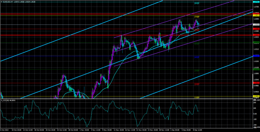 Обзор пары EUR/USD. 12 декабря. Сумасшедшая неделя начинается!ИнстаФорекс - Instaforex, 2 года назад Валютная пара EUR/USD в пятницу показала довольно слабые движения, как и на всей прошлой неделе. Нельзя сказать, что волатильность сейчас минимальная, а трендовое движение отсутствует на 4-часовом ТФ, но все же характер движения пары за последние пять торговых дней оставлял желать лучшего. Американской валюте вновь не удалось не то, чтобы скорректироваться, а даже мувинг преодолеть. Таким образом, все трендовые индикаторы остаются направленными вверх и в данное время нет ни одной технической причины продавать пару. Зато фундаментальных и макроэкономических причин в избытке. Начнем с того, что многие макроэкономические отчеты последних недель были достаточно позитивными для американской валюты. Например, последний NonFarm Payrolls. Но в лучшем случае все они провоцировали небольшое укрепление доллара, которое очень быстро заканчивалось. Отчеты, которые поддерживали евровалюту, имели более длительный эффект. Фундаментальный фон последнего времени сводился для рынка к тому факту, что ФРС начнет замедлять темпы ужесточения монетарной политики. Больше рынок ничего не интересовало, и мы считаем, что это была главная причина падения американской валюты в последние недели или даже месяцы. Также можно отметить, что, с технической точки зрения, текущее движение на Север может быть банальной коррекцией для 24-часового ТФ, так как нисходящий тренд занял практически два года, в течение которых европейская валюта показывала способность скорректироваться максимум на 400 пунктов. Когда-то это должно было закончиться. Возможно, сейчас. Таким образом, если анализировать «технику», то все абсолютно логично и закономерно. Если анализировать «фундамент», то вопросов к росту европейской валюты остается очень много... Заседания ЦБ, инфляция в США.На текущей неделе ключевыми событиями будут, конечно, заседания ФРС и ЕЦБ. После долгих недель обсуждений, заявлений, речей и так далее все сейчас сводится к тому, что оба регулятора повысят свои ставки на 0,5%. Если к такому решению ФРС рынок уже давным-давно готов, так как в последние 2-3 недели все члены монетарного комитета только и делали, что говорили о необходимости немного смягчить агрессивный настрой, то аналогичное решение ЕЦБ сейчас выглядит не совсем однозначно и логично. Напомним, что в Евросоюзе инфляция продолжает расти в то время, как в США она уже несколько месяцев подряд снижается. Поэтому ЕЦБ никакого морального права не имеет замедлять темпы повышения ставки в данное время. Однако ранее мы уже говорили о том, что, во-первых, проблема высокой инфляции(выше целевого уровня 2%) может стать актуальной на долгие годы. А во-вторых, не все страны Евросоюза способны выдержать высокие ставки(5% или более). В этом случае у них могут начаться финансовые проблемы, а ЕЦБ придется вновь оказывать им монетарную поддержку в виде различных программ, от которых он только недавно отказался в пользу ужесточения монетарной политики. Поэтому, скорее всего, европейский регулятор займет позицию «где-то посередине». Он постарается повысить ставку максимально, но при этом не будет гнаться за ФРС. Инфляция в этом случае снизиться, но вряд ли достигнет целевых 2%. С нашей точки зрения, такое положение вещей может вновь начать оказывать д