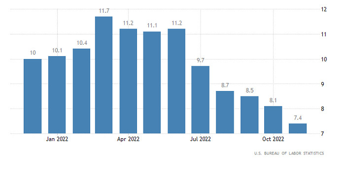 Горящий прогноз по EUR/USD от 12.11.2022ИнстаФорекс - Instaforex, 2 года назад Масштабы снижения темпов роста цен производителей в Соединенных Штатах полностью совпали с прогнозами. Вот только надо сделать поправку на пересмотр предыдущих данных в большую сторону, с 8,0% до 8,1%. Так что индекс цен производителей снизился до 7,4%, вместо 7,3%. Следовательно, инфляция тоже будет замедляться немного меньшими темпами, из чего следует, что Федеральная Резервная Система скорее всего повысит ставку рефинансирования, уже в эту среду, на семьдесят пять базисных пунктов. Что и привело к незначительному ослаблению единой европейской валюты. Незначительным оно оказалось по той причине, что инфляция в Соединенных Штатах все же снижается, а значит сохраняется вероятность замедления темпов роста процентных ставок. Причем не в следующем году, а уже в этом. Другое дело, что эта вероятность несколько снизилась. Именно эта переоценка вероятностей и стала причиной снижения единой европейской валюты. Индекс цен производителей (Европа): Сегодня же единая европейская валюта скорее всего будет ориентироваться на фунт, так как за исключением данных по промышленному производству в Великобритании, макроэкономический календарь абсолютно пуст. Темпы же спада промышленного производства могут несколько замедлиться, что придаст фунту некоторый оптимизм, и позволит ему несколько усилить свои позиции. Ну а единая европейская валюта последует за ним. Евро по отношению к доллару США в ходе сближения цены с локальным максимумом восходящего цикла, это район 1.0580/1.0600, сократила объема длинных позиций. Вследствие чего возник отскок цены, в ходе которого котировка вернулась к уровню 1.0500. Технический инструмент RSI H4 за счет ценового отката локально пересекла средний уровень 50 сверху вниз. Стоит отметить, что RSI все еще находится в районе средней отметки, это может сигнализировать о характерной неопределенности среди участников рынка. Alligator H4 ввиду недавнего отката не имеет четкого технического сигнала. Скользящие линии MA имеют первичное переплетение друг с другом. Alligator D1 игнорирует локальные проявления цены, скользящие линии MA направлен вверх, что соответствует восходящему циклу. Ожидания и перспективы В данной ситуации котировка на время может оказаться зажата между двумя контрольными уровнями 1.0500/1.0600. Этот ценовой ход приведет к процессу накопления торговых сил, который будет выражен в исходящем из заданного диапазона импульсе. Комплексный индикаторный анализ в краткосрочном и внутридневном периодах имеют сигнал к продаже за счет возвращения цены к уровню 1.0500. В среднесрочном периоде индикаторы ориентированы на восходящий цикл. Материал предоставлен компанией InstaForex - www.instaforex.com |