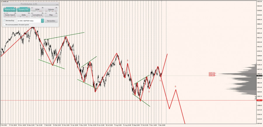 Долгосрочная тенденция: в лонг. Максимальное скопление объемов текущего контракта расположено в диапазоне по котировкам 3938.69-3975.51. В настоящий момент по SNP500 совершаются инвестиционные операции внутри указанного диапазона, указывая на временную неопределенность.