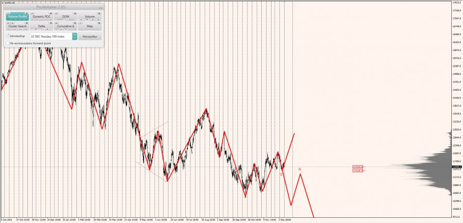 Альтернативный сценарий: при закреплении котировок индекса Nasdaq выше зоны 1/2 (11859.1) при откатах искать покупки по паттерну в новом диапазоне выгодных цен, с целями: обновление максимумов и тестирование нижней границы НКЗ (12214.6).