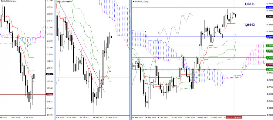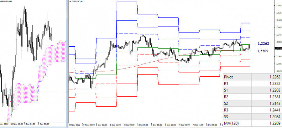 EUR/USD и GBP/USD 12 декабря – рекомендации технического анализаИнстаФорекс - Instaforex, 2 года назад EUR/USD Старшие таймфреймы Прошлая неделя закрылась свечой неопределённости. Игроки на повышение протестировали район притяжения и влияния месячного сопротивления 1,0611, но не смогли добиться результата. При этом сопернику также не хватило сил на перелом ситуации и возврат своих перспектив. Поэтому противостояние продолжается. Ограничением для игроков на повышение сейчас по-прежнему служит 1,0611, а возможности игроков на понижение, как и ранее, упираются в поддержку дневного краткосрочного тренда 1,0442. Н4 – Н1 Работая в границах ограничений старших таймов, пара на младших временных интервалах взаимодействует с ключевыми уровнями, которые сегодня расположены на 1,0518 (недельная долгосрочная тенденция) и 1,0543 (центральный Пивот-уровень дня). Закрепление и развитие ситуации ниже ключевых уровней приведёт к усилению игроков на понижение. Поддержками внутри дня будут служить классические Пивот-уровни (1,0497 – 1,0457 – 1,0411). Закрепление выше ключевых уровней (1,0518-43) откроет возможности для подъёма и усиления бычьих настроений. Повышательные ориентиры сегодня внутри дня находятся на 1,0583 – 1,0629 – 1,0669 (классические Пивот-уровни). *** GBP/USD Старшие таймфреймы Игроки на повышение продолжают тестировать важные рубежи 1,2292 – 1,2302 (уровень 100% отработки дневной цели + месячный среднесрочный тренд). Преодолеть встреченные сопротивления не удалось. При этом и игроки на понижение не смогли, используя силу уровней, реализовать отбой от встреченных сопротивлений. В результате мы продолжаем ожидать итога и развязки от взаимодействия и тестирования 1,2292 – 1,2302. Следующее сопротивление расположено на 1,2454 (нижняя граница месячного облака), а ближайшие поддержки можно отметить на 1,2121 – 1,2099 (дневной краткосрочный тренд + первый целевой ориентир). Н4 – Н1 На младших таймфреймах пара находится в зоне притяжения ключевых уровней, которые сегодня можно отметить на 1,2262 – 1,2209 (центральный Пивот-уровень + недельная долгосрочная тенденция). Работа в непосредственной близости к уровням формирует неопределённость. Выход за приделы зоны притяжения может послужить развитию ситуации и формированию преимущества для одной из сторон. Дополнительные ориентиры внутри дня сегодня находятся на рубежах 1,2322 – 1,2381 – 1,2441 (сопротивления классических Пивот-уровней) и 1,2143 – 1,2084 (поддержки классических Пивот-уровней). *** При техническом анализе ситуации используются: старшие таймфреймы – Ichimoku Kinko Hyo (9.26.52) + уровни Фибо Киджун Н1 – Pivot Points (классические) + Moving Avarage 120 (недельная долгосрочная тенденция) Материал предоставлен компанией InstaForex - www.instaforex.com |