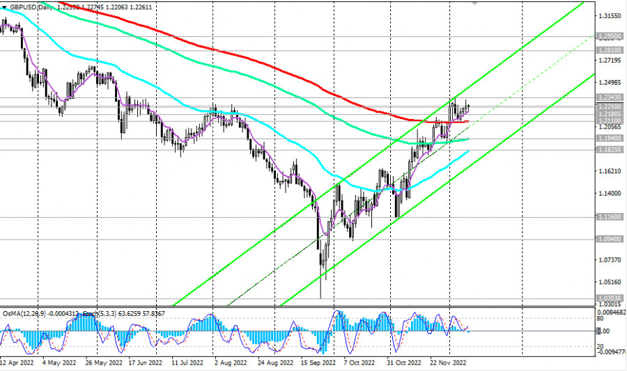GBP/USD: технический анализ и торговые рекомендации на 12.12.2022ИнстаФорекс - Instaforex, 2 года назад Динамику основных валют на этой неделе, в том числе евро, франка, а также доллара и фунта будут определять, скорее всего, заседания центральных банков соответствующих стран. Первым среди них завершит свое заседание ФРС. Ее решение по процентной ставке будет опубликовано в среду (в 19:00 GMT), решение же Банка Англии – в четверг (в 12:00 GMT). Как уже отметили мы в нашем сегодняшнем «Фундаментальном анализе», пара GBP/USD развивает позитивную динамику, пытаясь прорваться в зону выше долгосрочного уровня сопротивления 1.2250 (ЕМА50 на недельном графике). В случае прорыва локального уровня сопротивления 1.2343 не исключен дальнейший рост в сторону ключевых уровней сопротивления 1.2810 (ЕМА144 на недельном графике), 1.2950 (ЕМА200 на недельном графике), отделяющих долгосрочный бычий тренд GBP/USD от медвежьего. В этом смысле и в расчете на реализацию данного сценария имеет смысл поставить отложенные стоп-ордера на покупку чуть выше уровней сопротивления 1.2322, 1.2343 с целями на указанных нами уровнях. В альтернативном сценарии цена пробьёт ключевой уровень поддержки 1.2110 (ЕМА200 на дневном графике GBP/USD), направившись после пробоя уровня поддержки 1.1940 (ЕМА144 на дневном графике) вглубь нисходящего канала на недельном графике. Его нижняя граница проходит ниже отметки 1.0200, т.е. еще ниже локального многолетнего минимума 1.0353, достигнутого парой в конце сентября, как раз накануне вмешательства Банка Англии в торги на рынке гособлигаций. Этот сценарий на возобновление снижения, которое может оказаться, по некоторым прогнозам экономистов еще глубже, тоже имеет право на существование. Самым первым сигналом на его реализацию станет пробой важного краткосрочного уровня поддержки 1.2180 (ЕМА200 на 1-часовом графике), а уровня поддержки 1.1825 (локальный уровень поддержки и ЕМА50 на дневном графике) – подтверждающим. А пока же, выше уровня поддержки 1.2110 предпочтительными остаются длинные позиции. *) об особенностях торговли GBP/USD также см. в статье GBP/USD: валютная пара (характеристики, рекомендации) **) о важных событиях недели см. в Важнейшие экономические события недели 12.12.2022 – 18.12.2022 Уровни поддержки: 1.2250, 1.2200, 1.2180, 1.2110, 1.2100, 1.2000, 1.1940, 1.1900, 1.1825, 1.1800 Уровни сопротивления: 1.2322, 1.2340, 1.2400, 1.2500, 1.2810, 1.2950
