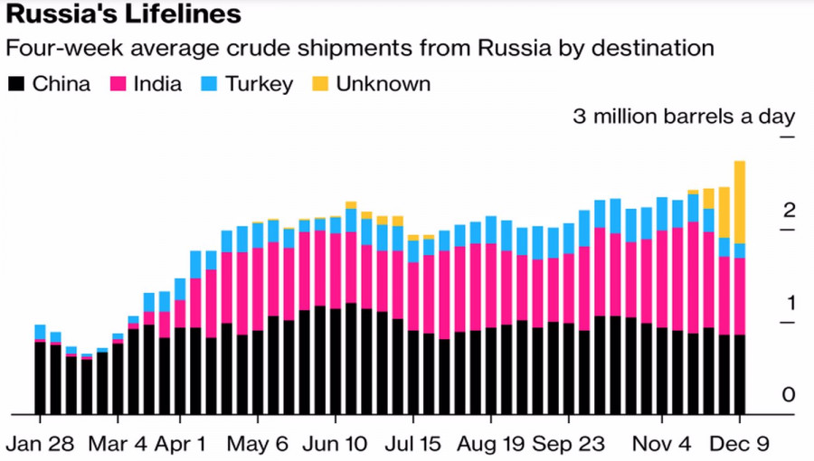 Нефть не стала объявлять войнуИнстаФорекс - Instaforex, 2 года назад Эмбарго Европейского союза в отношении российской нефти вступает в силу, страны G7 согласовывают потолок цен, но, вместо того чтобы расти на фоне потенциального недостатка предложения, Brent падает. Более того, рынок черного золота переходит из бэквардейшн к контанго, что свидетельствует о некотором переизбытке поставок и о профиците. Парадокс? На самом деле нет. Нужно просто копнуть глубже, чтобы во всем разобраться. Трейдеры беспокоились, что объявление о потолке цен на черное золото из РФ чревато новой войной. На этот раз не газовой, когда Москва перекрывала краны, ведущие в Европу, а нефтяной. Однако заявления Кремля о том, что России ничего не угрожает и она всего лишь рассмотрит вопрос снижения добычи, успокоили инвесторов. На самом деле производство может действительно упасть, но не более чем на 500 тыс. б/с. Остальные потоки при текущих ценах Москва перенаправит. Другое дело, если цены будут расти, а потолок останется прежним, в $60 за баррель. Тогда можно будет рассуждать о нефтяной войне. Динамика Brent и российских сортов нефти Пока же Россия успешно перенаправляет поставки черного золота с Запада на Восток. Если его импорт в Европу по морю упал до нуля, то три крупнейших покупателя в лице Китая, Индии и Турции увеличили его до 2,73 млн б/с. Это в четыре раза превышает имевшие место до вооруженного конфликта на Украине уровни. Динамика морских потоков российской нефти К тому же нужно понимать, что от введения Большой семеркой потолка цен на российскую нефть больше всего выиграл теневой флот танкеров, который не подчиняется правилам Европы или США и ранее обеспечивал поставки из Венесуэлы и Ирана. Теперь он больше внимания будет уделять России. Падению Brent способствовал и факт более незначительного сокращения добычи, чем объявленные ОПЕК+ 2 млн б/с. На самом деле речь идет о 1 млн б/с, так как некоторые члены Альянса, включая Анголу и Нигерию, пытаются выполнять свои квоты. К тому же опасения по поводу глобальной рецессии оказывают давление на спрос. В начале второй декады декабря ситуация стала меняться. Более быстрое открытие экономики Китая, чем предполагалось, уход в тень страхов по поводу энергетического кризиса в Европе и его влияния на ВВП, а также закрытие трубопровода Keystone, по которому из Канады в США поступало около 620 тыс. б/с, позволили Brent нащупать дно. Действительно, Пекин намерен принимать больше иностранных туристов, крупнейший в мире внутренний рынок авиаперевозок восстанавливается, а эксперты Bloomberg ожидают новых стимулов в монетарной и фискальной политике Поднебесной, чтобы поддержать рост ВВП. Технически Brent продолжает двигаться в рамках нисходящего торгового канала. Потенциально это может привести к снижению котировок фьючерсов до $70 за баррель. Тем не менее если североморскому сорту удастся зацепиться за пивот-уровень $78,5, а затем взять штурмом сопротивление на $80,2, появится возможность для краткосрочных покупок в направлении $83,5 и $86,5. Материал предоставлен компанией InstaForex - www.instaforex.com |