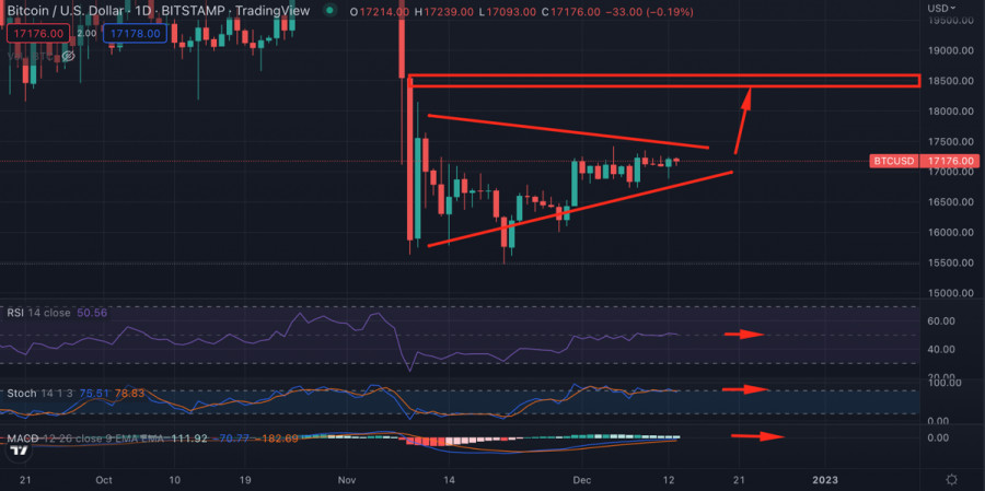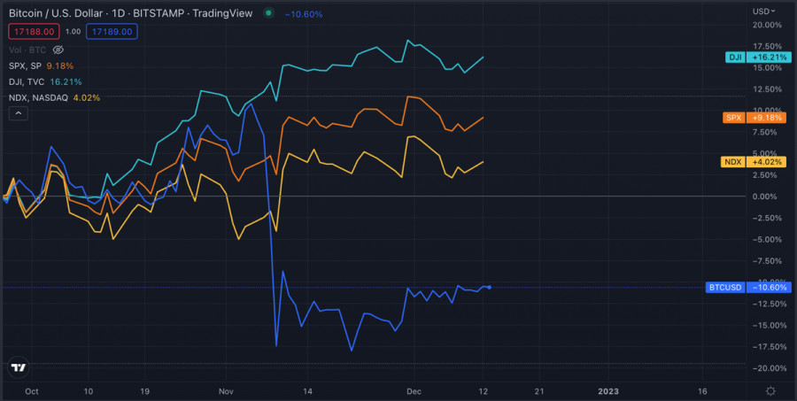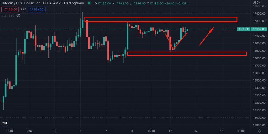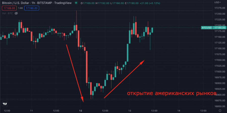 Макроэкономический фон усиливает рынок акций: как это повлияет на Биткоин?ИнстаФорекс - Instaforex, 2 года назад Очередную торговую неделю Биткоин начал с попытки медведей протестировать уровень поддержки на $16,7k. Катализатором давления продавцов на цену криптовалюты стали массовые продажи цифровых активов утром в понедельник на азиатских рынках. В моменте цена Биткоина достигала уровня $16,8k, однако впоследствии покупателям удалось отвоевать инициативу и поглотить медвежьи объемы. В результате главная криптовалюта завершила торговый день выше $17k, чем подтвердила текущих бычьих позиций. Стоит отметить значительное повышение торговой активности быков во второй половине дня. Это связано с открытием американских рынков и растущей взаимосвязью между рынком акций и криптовалютами. По итогам вчерашнего дня SPX и другие фондовые индексы показали хороший прирост, зацепив и криптовалютный рынок. Влияние рынка акций на БиткоинУспешный бычий понедельник рынка криптовалют тесно взаимосвязан с фондовыми рынками. И есть все основания полагать, что в ближайшее время корреляцию двух индустрий позволит Биткоину и другим активам покорить локальные максимумы. На это есть две причины, и первая из них заключается в том, что институциональные инвесторы и хедж-фонды начали активно вкладываться в акции. По сообщениям WSJ это связано с постепенным снижением инфляции и последующим смягчением монетарной политики ФРС. Второй причиной являются балансы Федерезерва, которые достигли 52-недельного минимума. Показатель упал на $383 миллиарда от пиковых отметок, зафиксированных в апреле 2022 года. Это означает, что регулятор постепенно приближается к максимуму программы количественного сокращения. Сигналы для ростаУчитывая благоприятный фундаментальный фон, текущая неделя может стать ключевой в реализации бычьего тренда Биткоина. С 13 по 14 ноября выйдет статистика по базовому индексу потребительских цен в США, а также решение по ключевой ставке от ФРС и конференция Пауэлла. 15 числа выйдет ключевой показатель первичных заявок по безработице в США. Некоторые эксперты считают, что данные по рынку труда могут спровоцировать продление жесткой монетарной политики ФРС. Однако в целом рынки ожидают, что по мере приближения к весне 2023 года риторика Джерома Пауэлла будет становиться все более либеральной. Учитывая это, инвестиционные потоки в высокорисковые активы, в том числе криптовалюты, будут расти. Анализ BTC/USDПо итогам понедельника Биткоин совершил V-образный разворот, поглотил медвежьи объемы и достиг уровня $17k. Далее цена столкнулась с повышенным сопротивлением медведей вблизи уровня $17,3k-$17,4k, которые являются ключевой зоной сопротивления на данный момент. На дневном графике ситуация кардинальным образом не изменилась, так как Биткоин продолжает движение в рамках диапазона $16,7k-$17,4k. Вчерашняя неудачная попытка совершить медвежий пробой $16,7k завершилась неудачей, что указывает на движение в обратном направлении к $17,4k. Учитывая высокую волатильность из-за предстоящей публикации отчетности в США, технические метрики не будут отыгрывать существенной роли в течении следующих двух дней. Рынок все еще на дне, а инвесторы все еще напуганы, а потому новостной фон – лучший катализатор для движения цены. ИтогиСитуация благоприятно складывается для быков, та