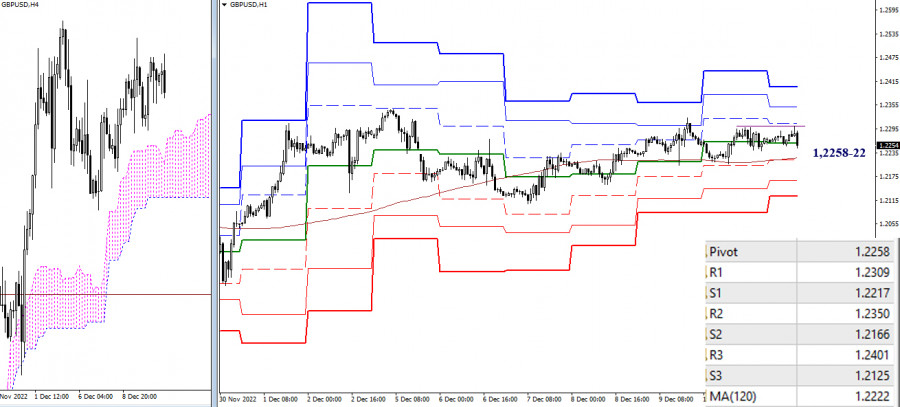 EUR/USD и GBP/USD 13 декабря – рекомендации технического анализаИнстаФорекс - Instaforex, 2 года назад EUR/USD Старшие таймфреймы За прошлые сутки в ситуации изменений не произошло. Пара предпочитает консолидироваться, сохраняя неопределённость. Расположение ближайшего важного сопротивления 1,0611 (месячный Фибо Киджун) также остаётся прежним, а вот поддержка дневного краткосрочного тренда (1,0494) сегодня выдвинулась вперёд и стала ближе к графику цены. Возможно, для изменения сложившейся неопределённости нужно надёжное преодоление ограничений в виде сопротивления (1,0611) или поддержки (1,0494). Н4 – Н1 На младших таймфреймах ситуация тоже не претерпела кардинальных перемен. Пара продолжает работу в зоне притяжения ключевых уровней, которые сегодня объединяют свои усилия в районе 1,0524-41 (центральный Пивот-уровень + недельная долгосрочная тенденция). Ориентирами для развития движения внутри дня служат классические Пивот-уровни. Для игроков на повышение важны сопротивления 1,0576 – 1,0615 – 1,0650. Для игроков на понижение могут иметь значение поддержки 1,0502 – 1,0467 – 1,0428. *** GBP/USD Старшие таймфреймы Ситуация не получила развития, поэтому все ранее озвученные выводы и ожидания сохраняют свою актуальность. Пара находится под важным сопротивлением 1,2292 – 1,2302 (уровень 100% отработки дневной цели + месячный среднесрочный тренд). Его пробой или же формирование выраженного отбоя будут определять дальнейшее развитие ситуации. Ближайшая поддержка сегодня расположена на 1,2197 (дневной краткосрочный тренд). Н4 – Н1 На младших таймфреймах ключевые уровни сейчас выполняют роль поддержек, находясь на рубежах 1,2222-58 (центральный Пивот-уровень + недельная долгосрочная тенденция). В настоящий момент доминирует неопределённость с небольшим перевесом преимуществ на стороне игроков на повышение. Пробой важного сопротивления старших таймов (1,2302) откроет дорогу к тестированию внутри дня сопротивлений классических Пивот-уровней 1,2309 – 1,2350 – 1,2401. Закрепление ниже ключевых уровней (1,2222-58) отдаст основное преимущество игрокам на понижение. Их последующими ориентирами внутри могут стать 1,2166 (S2) и 1,2125 (S3). *** При техническом анализе ситуации используются: старшие таймфреймы – Ichimoku Kinko Hyo (9.26.52) + уровни Фибо Киджун Н1 – Pivot Points (классические) + Moving Avarage 120 (недельная долгосрочная тенденция) Материал предоставлен компанией InstaForex - www.instaforex.com |