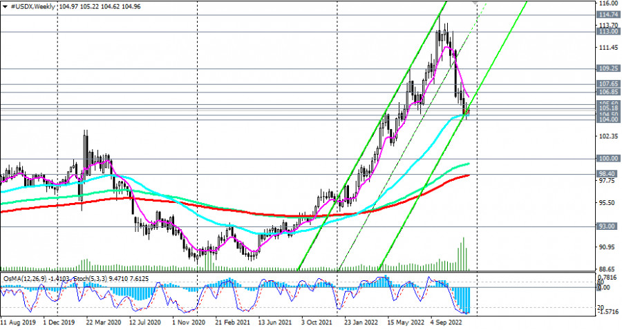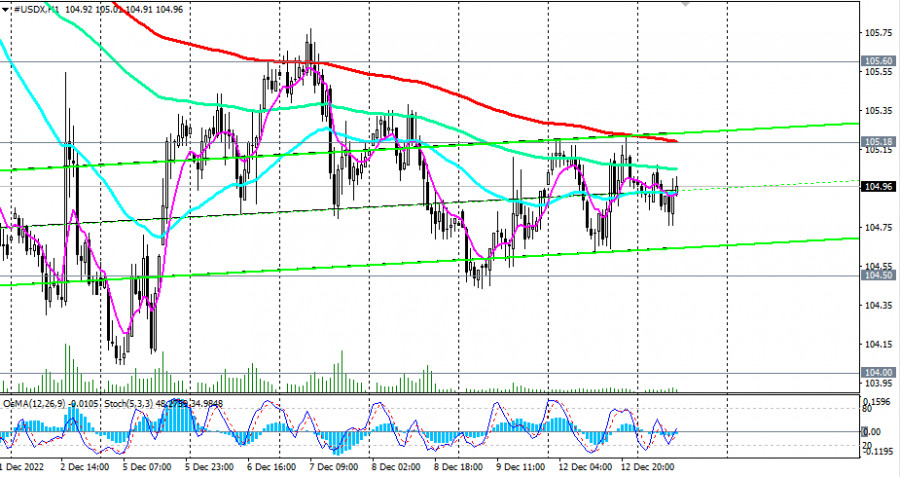 Индекс доллара #USDX: технический анализ и торговые рекомендации на 13.12.2022ИнстаФорекс - Instaforex, 2 года назад Как мы отметили в нашем сегодняшнем «Фундаментальном анализе», «первым сигналом для новых коротких позиций станет пробой локального уровня поддержки и ЕМА50 на недельном графике индекса DXY (CFD #USDX в торговом терминале МТ4), проходящий через отметку 104.50, а подтверждающим – пробой «круглого» уровня поддержки 104.00». Его пробой может значительно ухудшить перспективы доллара и его индекса DXY, переведя их в зону медвежьего рынка и направив в сторону уровней поддержки 100.00, 99.00. Пробой же ключевого уровня поддержки 98.40 (ЕМА200 на недельном графике) окончательно сломает бычий тренд DXY. В альтернативном сценарии и для возобновления бычьего тренда DXY цене необходимо пробиться в зону выше уровней сопротивления 106.85 (ЕМА144 на дневном графике), 107.65 (ЕМА50 на дневном графике). Первыми сигналами для развития этого сценария станут пробои уровней сопротивления 105.18 (ЕМА200 на 1-часовом графике), 105.60 (ЕМА200 на дневном графике). А пока же и ниже уровня сопротивления 105.60 предпочтительными остаются короткие позиции. *) о важных событиях недели см. в Важнейшие экономические события недели 12.12.2022 – 18.12.2022 Уровни поддержки: 105.00, 104.50, 104.00 Уровни сопротивления: 105.18, 105.60, 106.85, 107.65, 108.00, 109.00, 109.25, 110.00, 111.00, 113.00