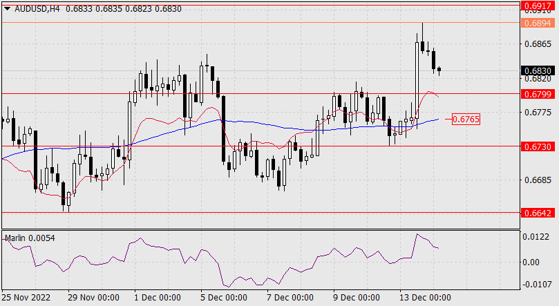 Прогноз по AUD/USD на 14 декабря 2022 годаИнстаФорекс - Instaforex, 2 года назад Австралийский доллар во вторник показал рост на 111 пунктов. Сегодня утром цена снижается, чем и обновила двойную дивергенцию. Целевой уровень 0.6917 не был достигнут, на что может быть две причины: уровень был в своё время определён не корректно, цена развернулась от ближайшего уровня 0.6894 – от вершины сентября 2019 года. Подтверждением разворота станет возврат цены под уровень 0.6799. В этом случае откроется цель 0.6730 и далее 0.6642.