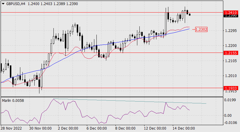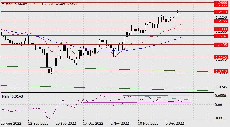 Прогноз по GBP/USD на 15 декабря 2022 годаИнстаФорекс - Instaforex, 2 года назад Британский фунт вчера подрос на 59 пунктов. Вновь было отработано сопротивление 1.2410. Осциллятор Марлин дневного масштаба не растёт, повышается вероятность его снижения из собственного диапазона (розовые линии) вниз. Можно заметить, что чем дольше сигнальная линия осциллятора находится в диапазоне, тем больше становится вероятной тройная дивергенция по бирюзовой линии.