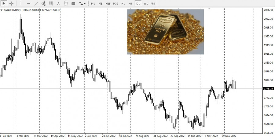 Вчерашние заявления на заседании FOMC, экономические прогнозы и пресс-конференция привели к снижению доллара, акций США и драгоценных металлов. По состоянию на 17:20 по восточному поясному времени самый активный контракт по золоту на февраль 2023 года снизился на 6,70 доллара, или 0,37%.