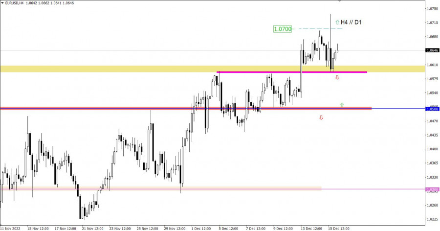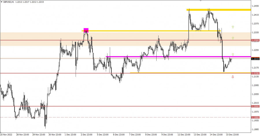 Вчера имели место сразу два заседания Центробанков: ЕЦБ и Банк Англии, где ожидаемо повысили процентные ставки на 50 базисных пунктов. ЕЦБ в ходе декабрьского заседания принял решение поднять три ключевые процентные ставки на 50 базисных пунктов. Ставка по кредитам повышена до 2,5%. Ставка по депозитам – до 2%. Ставка по маржинальным кредитам – до 2,75%. «Сегодня совет управляющих принял решение поднять три ключевые процентные ставки ЕЦБ на 50 б. п. и, исходя из существенного пересмотра в сторону повышения прогноза инфляции, ожидает их дальнейшего повышения», – говорится в протоколе заседания. Стоит отметить, что регулятор подчеркнул необходимость дальше повышать процентные ставки для того, чтобы вернуть инфляцию к целевому уровню в 2%. В свою очередь, Банк Англии повысил процентную ставку до 3,5%. Это решение полностью совпала с прогнозом. Замечу, что ставка была повышена по итогам девятого заседания подряд и достигла максимального значения за 14 лет. В заявлении Банка Англии говорится, что Великобритания сейчас находится в рецессии, однако состояние экономики немного лучше, чем ожидалось в ноябре. Регулятор прогнозирует, что ВВП Великобритании в четвертом квартале 2022 года, вероятно, снизится на 0,1% после падения на 0,5% в третьем квартале. Причина падения фунта стерлинга, вероятно, кроется в распределении голосов правления за сохранение текущий ставки. Разбор торговых графиков от 15 декабряЕвро по отношению к доллару США проявил спекулятивную активность на фоне поступающего информационного потока, но ни к чему кардинальному это не привело. Котировка на время проскользнула выше значения 1.0700 и также быстро вернулась ниже него. Фактически мы имеем застой на пике восходящего цикла. Валютная пара GBPUSD, в отличие от евро, проявила целенаправленный нисходящий настрой на рынке. Вследствие которого курса фунта стерлинга в моменте обвалился на 150 пунктов. В итоге котировка достигла уровня 1.2150, который был отыгран в качестве поддержки. Экономический календарь на 16 декабряС открытия европейской сессии были опубликованы данные по розничным продажам в Великобритании, темп спада которых, как бы, замедлился, но в то же время остался на том же уровне. Все это произошло по причине пересмотра предыдущих показателей с -6,1% до -5,9%. Фактические данные вышли -5,9%. В ЕС ожидается публикация итоговых данные по инфляции. В случае если показатели совпадут с предварительной оценкой, никакой должной реакции на рынке не возникнет. В случае расхождения прогноза может возникнуть спекулятивная активность. Особое внимание спекулянтов может быть уделено предварительным индексам деловой активности в Европе, Великобритании и Соединенным штатам. Временной таргетинг Индексы деловой активности в Европе – 12:0 по МСК Индексы деловой активности в Великобритании – 12:30 по МСК Инфляция в ЕС – 13:00 по МСК Индексы деловой активности в США – 17:45 по МСК