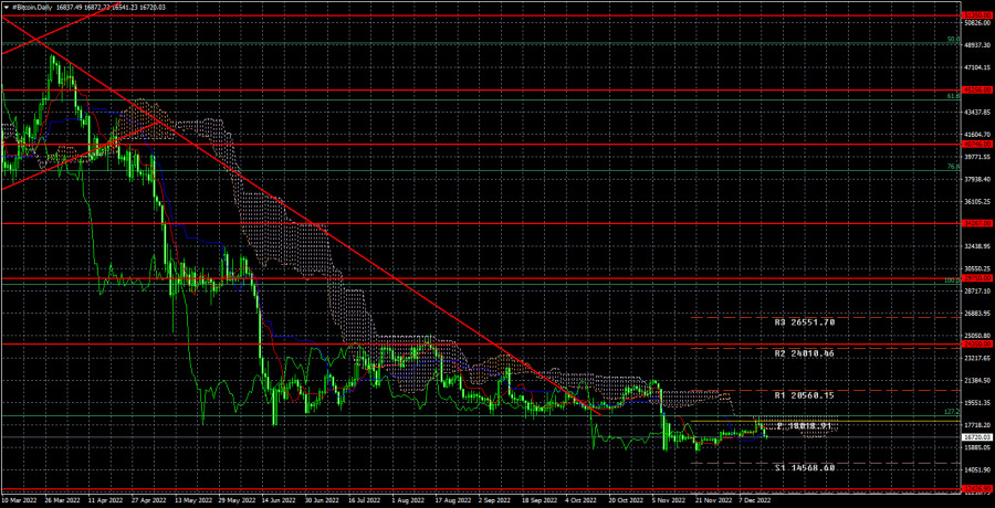 Сумасшедшая неделя завершена, биткоин опять падает.ИнстаФорекс - Instaforex, 2 года назад Криптовалюта биткоин на этой неделе сумела добраться до уровня Фибоначчи 127,2% - 18 500$, но не сумела преодолеть его. Таким образом, вполне резонно предполагать, что в ближайшее время мы увидим новый виток снижения котировок. В принципе, это падение уже началось, а многие эксперты криптовалютного сегмента вновь говорят об обвале первой криптовалюты в мире. Напомним, что в индустрии есть два вида экспертов: те, кто сами являются инвесторами в криптовалюту, поэтому заинтересованы в ее росте и всегда прогнозируют подъем стоимости; и те, кто инвестором не является. Мы больше доверяем мнению тех, кто не является владельцем биткоина, так как их мнение более независимое и незаинтересованное. И именно такие эксперты продолжают твердить о новых падениях криптовалюты. На этой неделе состоялось три заседания центральных банков, на которых синхронно были повышены ключевые ставки. Несмотря на то, что все три ЦБ замедлили темпы ужесточения монетарной политики, они все равно продолжают повышать ставки и проводить программы QT, которые являются антиподами программам QE. Программы QE проводились по времена пандемии, когда ЦБ были заинтересованы в стимулировании экономик. То есть экономики накачивались деньгами, соответственно росли инвестиции, рос и биткоин, а также многие другие финансовые инструменты. Сейчас мы уже почти год наблюдаем прямо противоположную картину, когда денежная масса сокращается, а заимствования стоят все дороже и дороже. Поэтому мы по-прежнему считаем, что фундаментальный фон остается для криптовалютного рынка негативным. Следовательно, мы вполне можем ожидать новых падений биткоина. Также следует напомнить, что, чем дольше биткоин остается «на дне», тем выше вероятность новых обвалов, так как многие субъекты криптовалютной индустрии начинают испытывать проблемы с ликвидностью из-за низкой стоимости BTC. В данное время он стоит даже ниже себестоимости, поэтому майнеры первые, кто попадает под сокращение. Биткоин становится просто невыгодно добывать. Также испытывают проблемы и биржи с фондами. Инвестиции сейчас просто отсутствуют, потому что никому не нужен «актив без перспектив». С нашей точки зрения, нужно ждать момента, когда ставки центральных банков достигнут своего максимума и перестанут расти. Именно тогда биткоин может хотя бы перестать падать. Однако теперь все будет зависеть и от наличия/отсутствия новых крахов в криптовалютной индустрии. Если они будут, это еще больше подорвет доверие к криптовалютному сегменту. На 24-часовом таймфрейме котировки «битка» остаются ниже уровня 18 500$. С нашей точки зрения, падение может продолжаться с целью 12 426$. Как мы и предупреждали, преодоление нисходящей линии тренда не означает завершение «медвежьей» тенденции, так как параллельно цена находилась в боковом канале. Сейчас биткоин располагается ниже этого канала, поэтому котировки могут продолжать движение на Юг. Материал предоставлен компанией InstaForex - www.instaforex.com |