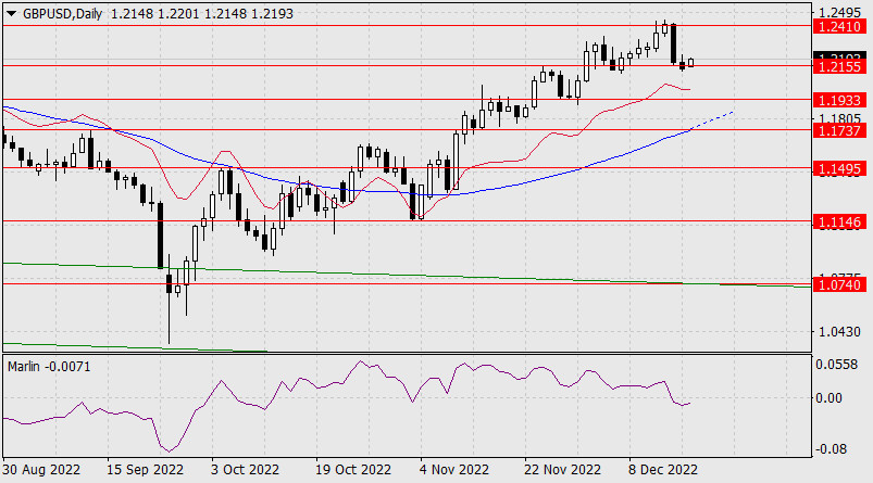 Прогноз по GBP/USD на 19 декабря 2022 годаИнстаФорекс - Instaforex, 2 года назад В пятницу фунт стерлингов не смог преодолеть поддержку 1.2155, но осциллятор Марлин закрепился под нулевой линией, чем и помогает цене закрепиться под поддержкой.