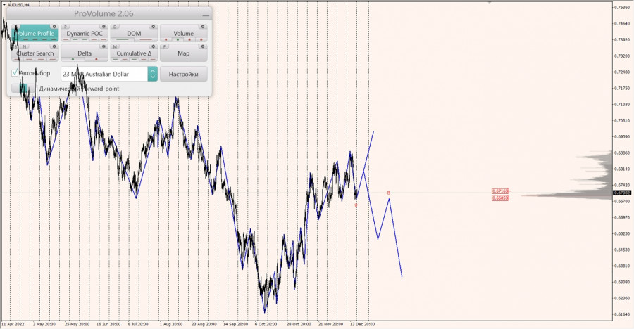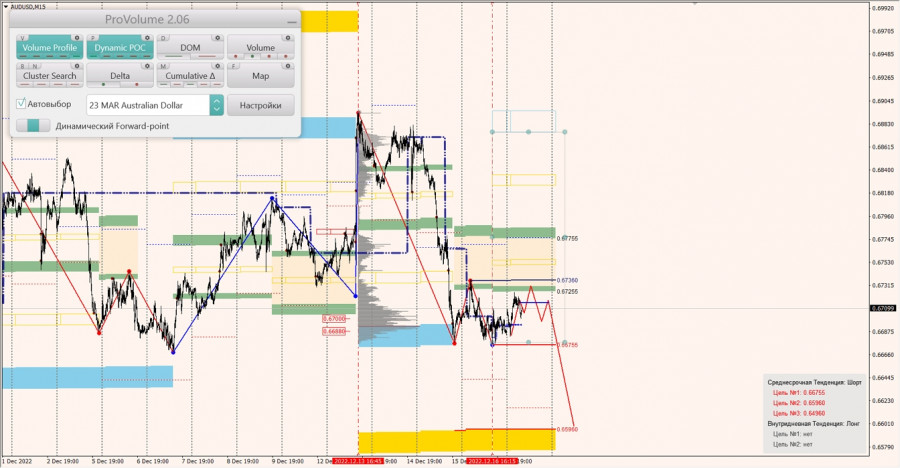Среднесрочная тенденция: в шорт. Максимальное скопление объемов среднесрочной тенденции расположено в диапазоне по котировкам 0.66880-0.67000. В настоящий момент по паре совершаются инвестиционные операции выше, указывая на слабость продавцов.