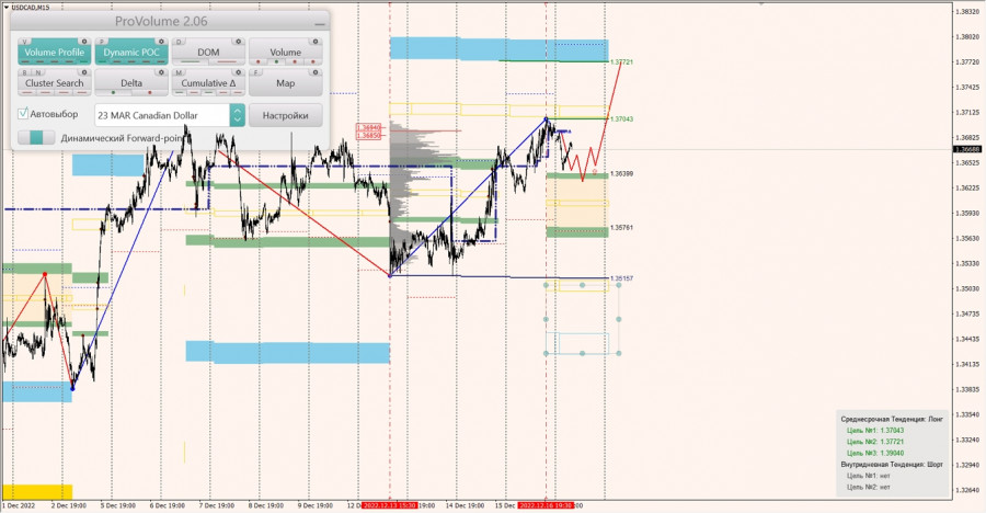 Среднесрочная тенденция: в лонг. Максимальное скопление объемов среднесрочной тенденции расположено в диапазоне по котировкам 1.36850-1.36940. В настоящий момент по паре совершаются инвестиционные операции ниже, указывая на слабость покупателей.