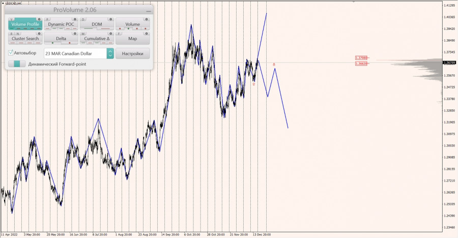 Область выгодных цен на покупку с точки зрения маржинального обеспечения располагается между зонами 1/4 и 1/2, построенными от максимума 16.12.2022.