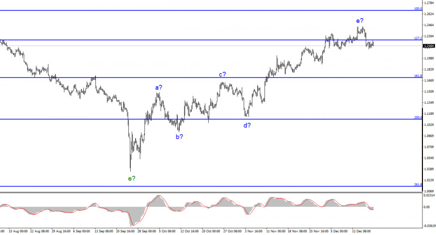 Анализ GBP/USD. 19 декабря. Британец переходит к медленным движениямИнстаФорекс - Instaforex, 2 года назад По инструменту Фунт/Доллар волновая разметка на данный момент выглядит довольно сложно, но все еще не требует внесения уточнений. Мы имеем пятиволновой повышательный участок тренда, который принял вид a-b-c-d-e и может быть уже завершен. Таким образом, я думаю, что повышение котировок инструмента может продолжаться еще некоторое время. Я считаю, что оба инструмента по-прежнему находятся в стадии построения повышательного участка тренда, после чего начнется обоюдное понижение. Новостной фон для британца в последние недели был настолько разнообразным, что даже сложно его охарактеризовать одним словом. У британца было достаточно причин и повышаться, и снижаться. Как видим, он выбирал и выбирает по сей день в основном только первый путь. Повышение котировок в течение последних недель приводило все к новым и новым усложнениям предполагаемой волны e. Сейчас она приняла уже достаточно протяженный вид, чтобы завершиться. По обоим инструментам волновая разметка допускает завершение построения восходящего участка в любой момент, поэтому пока я все еще жду снижения обоих инструментов, однако эти участки тренда вполне могут принять и еще более протяженный вид. Новостей нет, рынок отдыхаетКурс инструмента Фунт/Доллар в понедельник сначала повысился на 100 базовых пунктов, а потом снизился на столько же. Первый день недели прошел в относительно спокойных торгах, хотя амплитуду все же нельзя назвать слабой. Новостной фон сегодня отсутствует, а на всей текущей неделе в Великобритании выйдет только отчет по ВВП за третий квартал. Я не думаю, что рынок будет ждать его, как отчет по инфляции или заседание Банка Англии, потому что сейчас все упирается в денежно-кредитную политику и индекс потребительских цен. ВВП многие страны мира решили пожертвовать в угоду снижению инфляции, которая в этом году обновила рекорды последних десятилетий. В Великобритании уже многие официальные лица объявили не просто о том, что экономика, возможно, столкнется с рецессией, а о том, что рецессия уже началась. Эндрю Бейли говорил о 8 кварталах, на протяжении которых она будет наблюдаться. Таким образом, показатель ВВП сейчас не является важным. Я считаю, что сейчас следует отталкиваться от двух пунктов. Первый – волна e приняла достаточно протяженный вид, чтобы завершиться. Безусловно, эта волна, как и весь повышательный участок тренда, может принять практически любой вид. Но в то же время я опираюсь на сценарий, когда волны будут иметь хотя бы более-менее прогнозируемый вид. В этом случае эта волна уже давно должна подойти к концу. Поэтому я жду снижения британца. Второй – новостного фона, который бы поддерживал британца, на этой неделе не будет. Нередко за последние недели такой фон все же находился, а когда его не было, повышение британца не выглядело абсолютно пустым, так как время от времени новости все же поддерживали фунт. На этой неделе не будет абсолютно ничего важного, следовательно, коррекционная волна может продолжить свое построение. Общие выводыВолновая картина инструмента Фунт/Доллар предполагает построение нового понижательного участка тренда. Покупки инструмента я уже посоветовать не могу, так как волновая разметка допускает начало построения нисходя