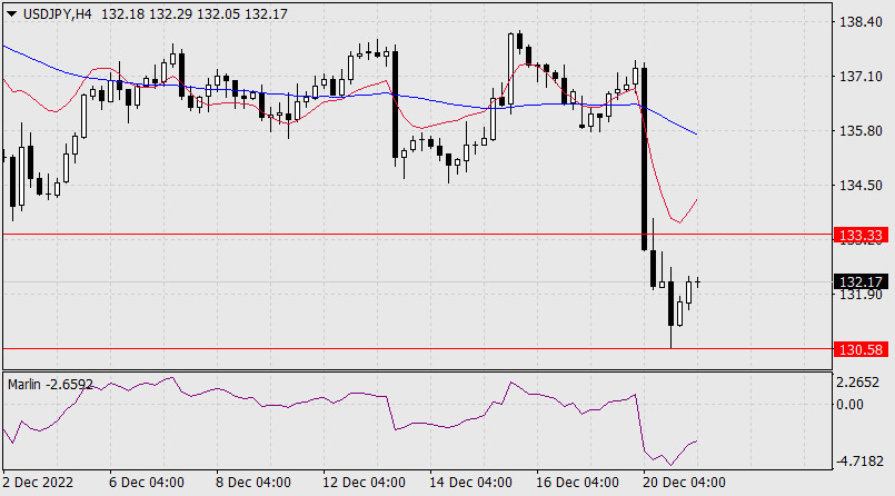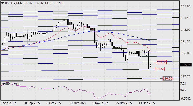 Прогноз по USD/JPY на 21 декабря 2022 годаИнстаФорекс - Instaforex, 2 года назад После вчерашнего решения Банка Японии расширить диапазон волатильности по доходности длинных гособлигаций и увеличении объёма выкупа облигаций на свой баланс, пара USD/JPY обвалилась на 3,79%. Нижняя тень дневной свечи в точности отработала поддержку вложенной линии ценового гиперканала месячного таймфрейма на отметке 130.58. Преодоление данной поддержки откроет цель 126.90. Но пока цена в коррекционном росте направляется к верхней линии на отметке 133.33. Осциллятор Марлин закрепился на отрицательной территории, у него приличный запас дистанции в продвижении вниз. Ждём завершения коррекции, попытку преодоления 130.58 и попытку отработки 126.90.