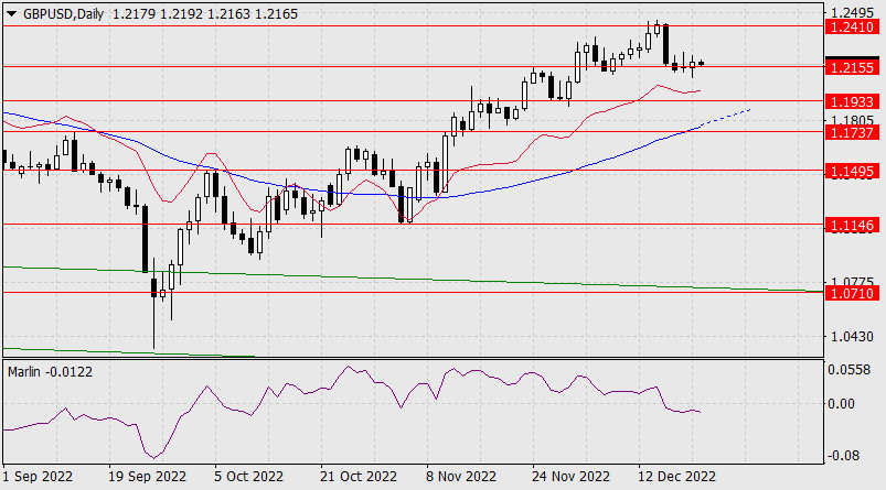 Прогноз по GBP/USD на 21 декабря 2022 годаИнстаФорекс - Instaforex, 2 года назад Британский фунт продолжает движение вдоль целевого уровня 1.2155, осциллятор Марлин движется горизонтально, но всё же на территории понижающейся тенденции. Закрепление цены под 1.2155 станет основным условием к отработке ближайшей цели 1.1933 (минимум 14 июня).