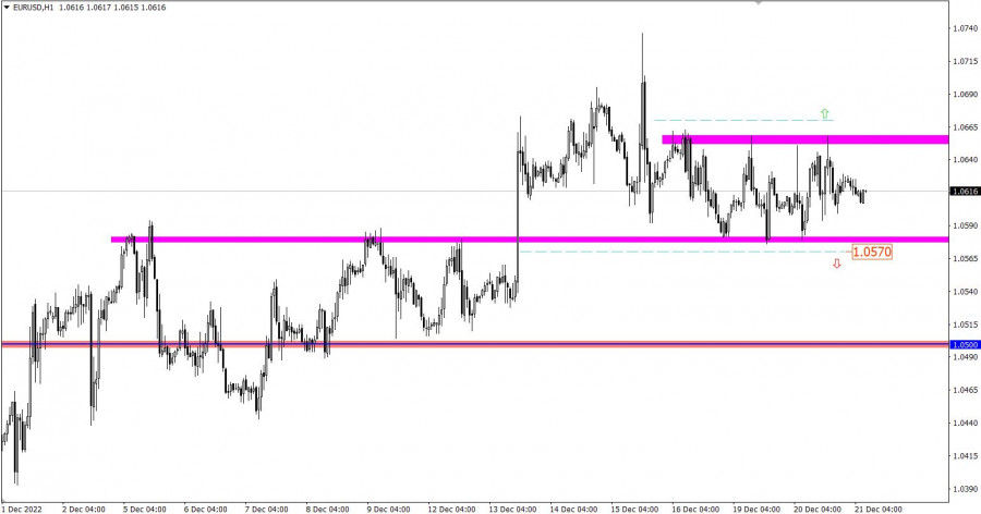 Вторник мало чем отличался от понедельника в плане макроэкономического календаря. В Европе и Великобритании важные статистические данные не публикуются. В то время как в Соединенных Штатах были опубликованы показатели по рынку недвижимости, которые отразили большие проблемы в этом секторе экономики. Число выданных разрешений на строительство в период ноября сократилось на 11,2%, это самый сильный спад с начала года. В то же время объём строительства новых домов в ноябре сократился на 0,5%. В итоге доллар США замедлил процесс укрепления. Разбор торговых графиков от 20 декабряВалютная пара EURUSD третий день движется в рамках консолидации 1.0580/1.0660, что указывает на технический сигнал накопления торговых сил. С высокой долей вероятности действующая остановка станет своеобразным рычагом для новых спекуляций на рынке. В свою очередь, валютная пара GBPUSD имеет аналогичный застой, который возник вдоль уровня 1.2150. Стоит отметить, что в четырехчасовом периоде наблюдается множество свеч типа дожи, что указывает на явную неопределенность в дальнейшем ходе среди участников рынка. В то же время это движение может быть классифицировано как процесс накопления торговых сил, при котором возможен резкий исходящий из диапазона импульс. Экономический календарь на 21 декабряТретий день подряд макроэкономический календарь условно пуст, публикация важных статистических данных не ожидается. Единственное, на что можно обратить внимание, так это на продажи на вторичном рынке жилья Соединенных Штатах, где прогнозируют его спад в период ноября. Временной таргетинг Продажи на вторичном рынке жилья (нояб.) – 18:00 по МСК