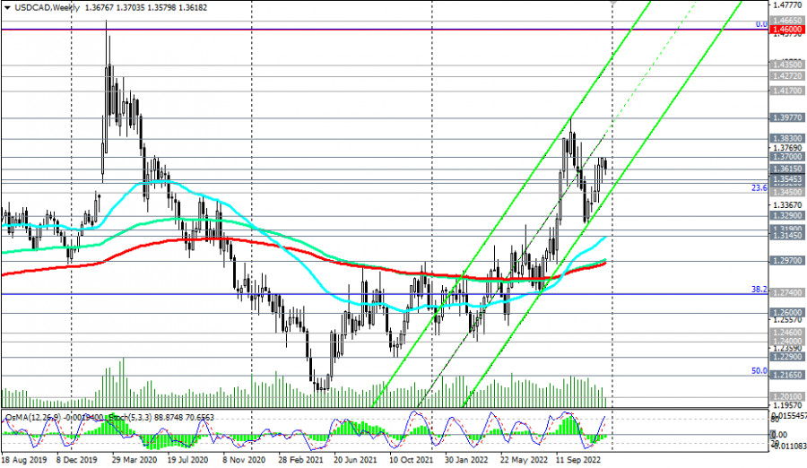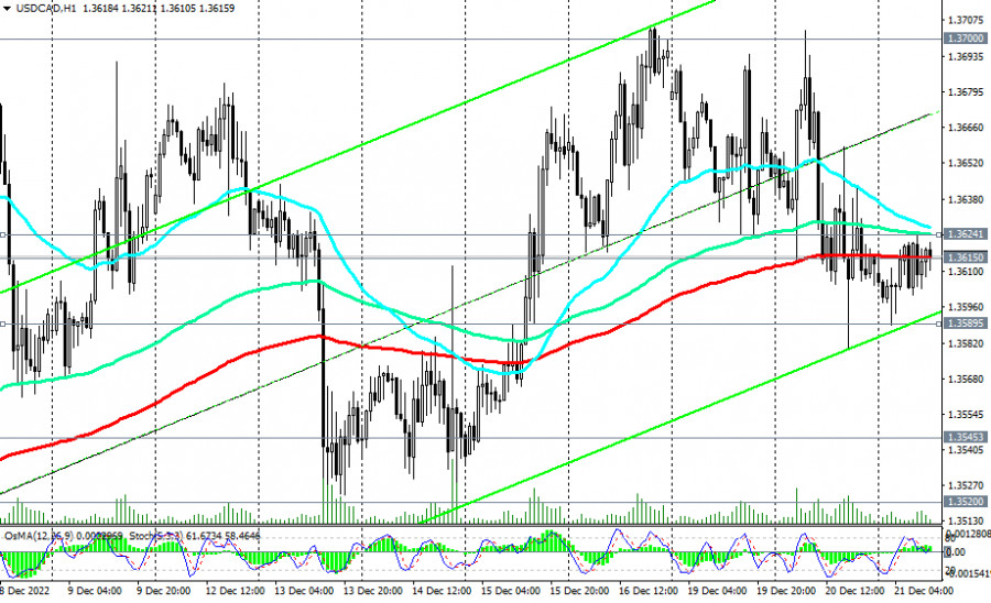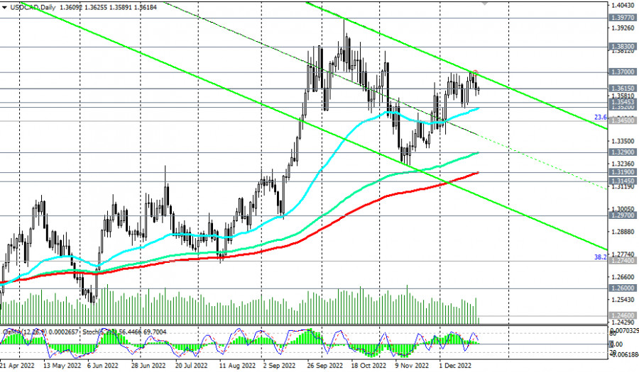 USD/CAD: технический анализ и торговые рекомендации на 21.12.2022ИнстаФорекс - Instaforex, 2 года назад Находясь выше ключевых уровней поддержки 1.3190 (ЕМА200 на дневном графике), 1.2970 (ЕМА200 на недельном графике), USD/CAD остается в зоне бычьего рынка. Как мы отметили в сегодняшнем «Фундаментальном анализе», в целом преобладает восходящая динамика, и пробой уровня сопротивления 1.3625 (верхняя граница краткосрочного диапазона) может стать сигналом для открытия новых длинных позиций. Ближайшая цель – локальный уровень сопротивления (и верхняя граница нисходящего канана на дневном графике) 1.3700. В альтернативном сценарии сигналом для возобновления коротких позиций станет пробой сегодняшнего минимума и нижней границы вышеупомянутого диапазона 1.3590 с целями на уровнях поддержки 1.3545 (ЕМА200 на 4-часовом графике) и 1.3520 (ЕМА50 на дневном графике). В свою очередь, от этих уровней можно планировать новые ордера на покупку, учитывая бычий тренд USD/CAD. *) о важных событиях недели см. в Важнейшие экономические события недели 19.12.2022 – 25.12.2022 **) об особенностях торговли USD/CAD см. в «USD/CAD: валютная пара (характеристики, рекомендации» Уровни поддержки: 1.3615, 1.3590, 1.3545, 1.3520, 1.3450, 1.3290, 1.3190, 1.3145 Уровни сопротивления: 1.3625, 1.3700, 1.3800, 1.3830, 1.3900, 1.3977, 1.4000