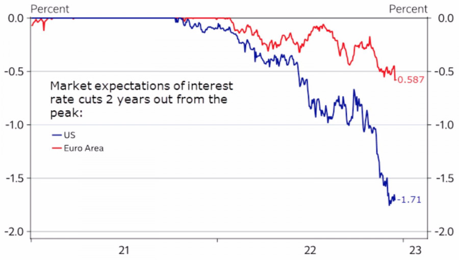 Три дорожки для евроИнстаФорекс - Instaforex, 3 года назад После бурных телодвижений, связанных с заседаниями ведущих центробанков мира, основной валютной паре неплохо бы передохнуть. А нам – порассуждать над ее перспективами. Представим их как уравнение с тремя неизвестными – инфляцией, экономикой и монетарной политикой. Рассмотрим несколько сценариев развития событий и сформулируем стратегии работы с EURUSD при каждом из них. Сценарий первый. Рыночный. Инвесторы всерьез рассчитывают, что агрессивное ужесточение денежно-кредитной политики спровоцирует рецессию. Это заставит ФРС снижать ставку по федеральным фондам уже во второй половине 2023, а не ждать до 2024, как предусматривают прогнозы FOMC. Это и есть тот «голубиный» разворот, о котором грезят рынки. На фоне более медленной монетарной экспансии ЕЦБ, когда ставка по депозитам упадет лишь на 55-60 б.п, а не на 170-175, как ставка ФРС, этот вариант предполагает ралли EURUSD в направлении 1,1-1,12 к концу следующего года. Динамика рыночных ожиданий снижения ставок ЕЦБ и ФРС в 2023 Сценарий второй. А что если ФРС все-таки права? Центробанк замедляет скорость ужесточения денежно-кредитной политики и обеспечивает экономике США мягкую посадку. Тем не менее высокое инфляционное давление закрепилось в Штатах надолго. Снизить его реально лишь до 3-4%, но не до 2%, как требует таргет. В итоге ставка по федеральным фондам растет до 5,25%, после чего Федрезерв делает паузу, по меньшей мере до начала 2024. Динамика EURUSD оказывается рваной в следующем году. Пара сохраняет повышенную чувствительность к данным по потребительским ценам. Их замедление – повод для покупок евро против доллара США и наоборот. Вероятнее всего, EURUSD сначала вырастет до 1,07-1,08 на фоне Рождественского ралли на американском рынке акций, затем просядет к 1,04, после чего начнется восстановление и рост в направлении 1,09-1,1. Наконец, сценарий третий. Апокалиптический. На мировую экономику обрушиваются новые беды в виде эскалации вооруженного конфликта на Украине или новой волны COVID-19, а инфляция в США после замедления в октябре-ноябре вновь начинает разгоняться. ФРС ничего не остается делать, как ускорить процесс ужесточения денежно-кредитной политики. Это оборачивается глобальной рецессией и ростом спроса на американский доллар как актив-убежище. Он вновь забирает этот статус у японской иены, так как повышение ставок Федрезервом оборачивается ралли доходности казначейских облигаций США. Даже на фоне спада в экономике. В этом случае EURUSD рискует вернуться к паритету. Выбираем, какой сценарий развития событий вам больше нравится, и строим долгосрочную торговую стратегию по анализируемой паре. Технически на недельном графике EURUSD продолжается реализация разворотного паттерна Волны Вульфа. Основная валютная пара упорно не желает падать ниже поддержек в виде пивот-уровней на 1,0535 и 1,0475. Это означает, что контроль над ней сохраняют «быки». Продолжаем покупать евро со среднесрочной целью $1,087. Материал предоставлен компанией InstaForex - www.instaforex.com |