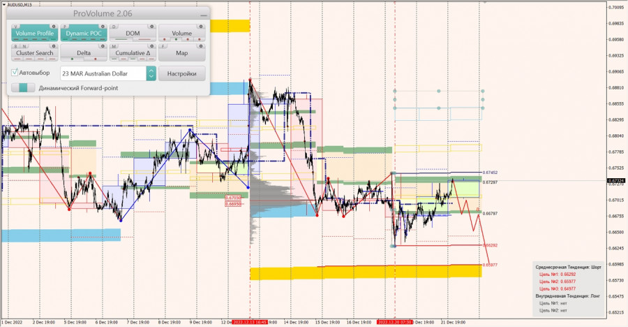 Среднесрочная тенденция: в шорт. Максимальное скопление объемов среднесрочной тенденции расположено в диапазоне по котировкам 0.66950-0.67050. В настоящий момент по паре совершаются инвестиционные операции выше, указывая на слабость продавцов.