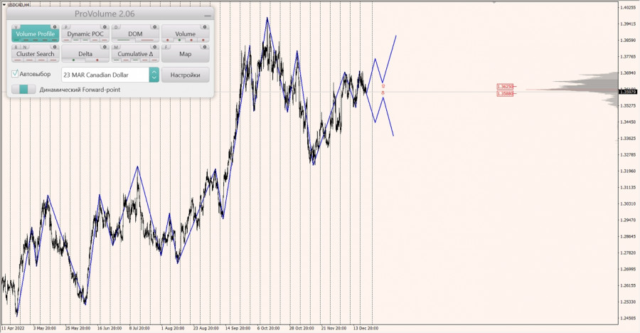 Область выгодных цен на покупку с точки зрения маржинального обеспечения, располагается между зонами 1/4 и 1/2, построенными от максимума 16.12.2022.