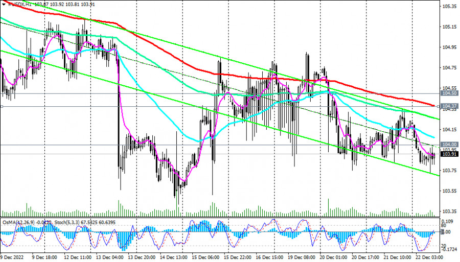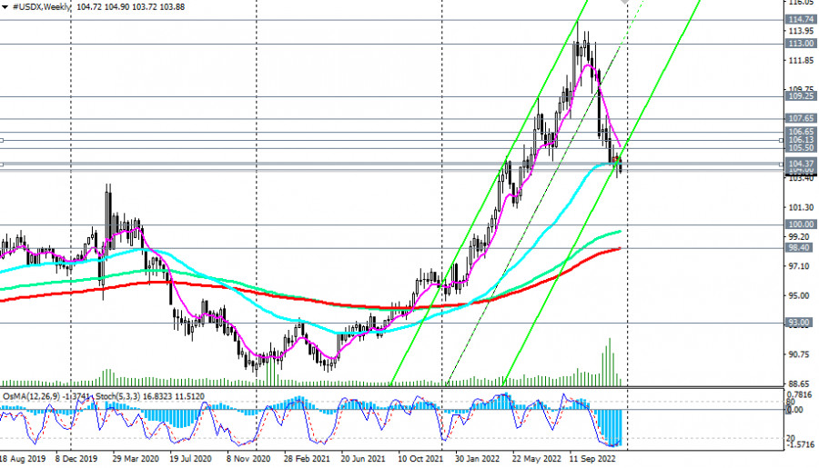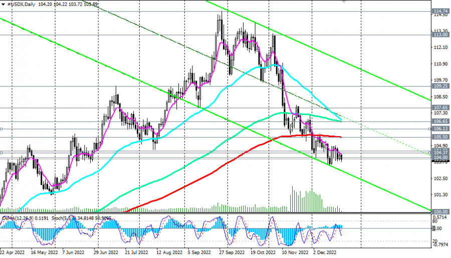 Индекс доллара #USDX: технический анализ и торговые рекомендации на 22.12.2022ИнстаФорекс - Instaforex, 2 года назад Доллар и его индекс DXY (CFD #USDX в торговом терминале МТ4) с октября продолжают оставаться под давлением. Участники рынка готовятся к дальнейшему замедлению темпов ужесточения монетарной политики ФРС. «Многие экономисты уже прогнозируют, что ФРС снова сократит размер повышения ставки в начале 2023 года, перейдя к повышениям на 0,25% в феврале и марте. А это предвестник более глубокого падения DXY», - отметили мы в сегодняшнем «Фундаментальном анализе». С технической же точки зрения пробой недавнего локального минимума вблизи отметки 103.50 подтвердит наше предположение и основной сценарий. В этом случае цена может направиться в сторону «круглого» и психологически значимого уровня поддержки 100.00. Пробой же уровня поддержки 98.40 (ЕМА200 на недельном графике) значительно повышает риски слома бычьего тренда. А пробой долгосрочного уровня поддержки 93.00 (ЕМА200 на месячном графике) окончательно сломает бычий тренд DXY. В альтернативном сценарии DXY возобновит рост, вернувшись в зону бычьего рынка, выше уровня сопротивления 105.50 (ЕМА200 на дневном графике). Первыми сигналами для реализации этого сценария станут пробои уровней сопротивления 104.37 (ЕМА200 на 1-часовом графике), 104.50 (ЕМА50 на недельном графике). Пробой уровней сопротивления 106.13 (ЕМА200 на 4-часовом графике), 106.65 (ЕМА144 на дневном графике) подтвердит этот сценарий. А пока же и ниже уровней сопротивления 104.50, 105.50 предпочтительными остаются короткие позиции. *) о важных событиях недели см. в Важнейшие экономические события недели 19.12.2022 – 25.12.2022 Уровни поддержки: 104.00, 103.52, 103.00, 102.00, 101.00, 100.00, 99.00, 98.40 Уровни сопротивления: 104.37, 104.50, 105.50, 106.13, 106.65, 107.65