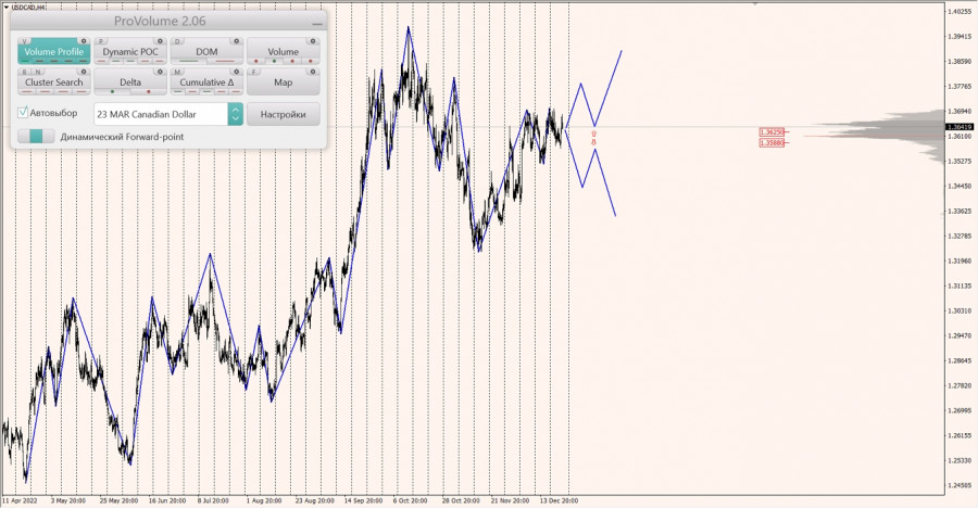 Долгосрочная тенденция: в лонг. Максимальное скопление объемов текущего контракта расположено в диапазоне по котировкам 1.35880-1.36250. В настоящий момент по паре совершаются инвестиционные операции выше, указывая на силу покупателей.