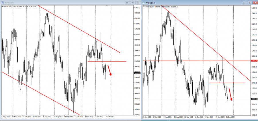 Череда позитивных новостей из США давит на фондовые индексыИнстаФорекс - Instaforex, 2 года назад Акции США снизились, так как трейдеры отыгрывали хорошие новости из США, подтверждающие решимость Федеральной резервной системы продолжать повышать процентные ставки. S&P 500 упал, а высокотехнологичный Nasdaq 100 опустился после того, как ключевая часть индикатора инфляции показала, что рост цен в ноябре замедлился меньше, чем ожидалось, в то время как потребительские расходы остались на прежнем уровне. Доходность казначейских облигаций выросла, а двухлетняя процентная ставка, чувствительная к политике, составила около 4,32%. Доллар мало изменился. Европейские фондовые индексы продолжают шортовую коррекцию: Базовый индекс цен на личное потребление, исключая продукты питания и энергию, составил 4,7% в годовом исчислении против 4,6%, прогнозируемых аналитиками, хотя и ниже октябрьских 5%. Однако личные расходы, скорректированные с учетом изменений цен, в ноябре остановились, продемонстрировав самый низкий уровень с июля и ниже прогноза. Базовые заказы на товары длительного пользования так же существенно вышли выше прогноза: Акции уже упали в четверг после сообщений, свидетельствующих о силе американского рынка труда и устойчивых потребительских расходах . Последние данные показали, что ФРС продолжит повышать ставки, хотя и более медленными темпами, по 50 базисных пунктов. Это привело к худшему декабрю для акций технологических компаний с момента взрыва пузыря доткомов два десятилетия назад, в то время как в целом акции США упали почти на 20% в этом году, что является их худшим показателем с 2008 года. фонды акций, по данным Bank of America Corp., после ФРС, Европейского центрального банка и Банка Японии были воинственными. «Исторически обычно рынок был прав, но в 2022 году это была ФРС», — сказал Джим Бьянко, основатель Bianco Research. «Мы ожидаем разворот в 2023 году или в 2024 год. Если рынок не получит разворота, которого он ожидает, я думаю, будет место для разочарования». Индекс Московской Биржи продолжает восстановление после обвала: Это связанно так же с нефтью, которая показала значительный недельный прирост, поскольку Россия заявила, что может сократить добычу сырой нефти в ответ на ограничение цен, введенное Большой семеркой на ее экспорт, что подчеркивает риски для мировых поставок в новом году. |