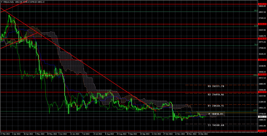 С чем подходит биткоин к Новому году?ИнстаФорекс - Instaforex, 2 года назад Криптовалюта биткоин продолжает торговаться в абсолютном флэте ниже уровня 18 500$. Напомним, что именно о таком варианте развития события мы и говорили множество раз, таким образом, все идет по плану. Теперь «биток» может находиться во флэте от нескольких недель до нескольких месяцев, но в конечном итоге мы ожидаем его падения минимум к уровню 12 426$. 2022 год заканчивается и его сложно назвать позитивным для биткоина. В течение этого года(и пары месяцев 2021) он подешевел на 75%, что опять-таки вряд ли кого-то удивило. Ни для кого уже не секрет, что во время «медвежьего» тренда криптовалюта может терять и до 90% своей стоимости. Так что биткоин пока еще очень легко отделался, потеряв только 75%. Конечно, фундаментальный фон текущего года был просто провальным для всех криптовалют. Напомним, что центральные банки всего мира начали ужесточать монетарную политику в надежде побороть высокую инфляцию, которая в некоторых странах вышла на 40-50-летние максимумы. Излишние деньги начали изыматься из экономики, а доходность безопасных активов – расти. Поэтому мы и увидели падение первой криптовалюты, как и многих других. Однако не следует забывать, что это биткоин – это исключительно спекулятивный актив. Мы уже приводили пример с подорожником. Если большинство людей на всей планете договорятся об инвестиционной привлекательности подорожника или будут использовать его сушеные листья в качестве средства обмена товарами, то его цена тоже будет расти, хотя это всего лишь обычная трава, которая растет практически везде. Такая же ситуация и с биткоином. Это просто кусок кода, который не выполняет никаких функций, поэтому если он растет, это означает только одно – его покупают. А покупают его только для одной цели – чтобы потом продать подороже и заработать. Есть лишь небольшая доля владельцев биткоина, которые используют его для оплаты или трансграничных переводов, но их слабо интересует курс биткоина, так как они не собираются его держать годами на своем балансе. Все остальные же стараются покупать подешевле, а продать подороже. Так как сейчас цена падает, то никто не спешит покупать. Криптобиржи начинают испытывать проблемы, майнинговые компании сокращают объемы производства, все идет к тому, что «криптозима» будет продолжаться еще некоторое время. На 24-часовом таймфрейме котировки «битка» остаются ниже уровня 18 500$. С нашей точки зрения, падение может продолжаться с целью 12 426$. Как мы и предупреждали, преодоление нисходящей линии тренда не означает завершение «медвежьей» тенденции, так как параллельно цена находилась в боковом канале. Сейчас биткоин располагается ниже этого канала, поэтому котировки могут продолжать движение на Юг. Материал предоставлен компанией InstaForex - www.instaforex.com |