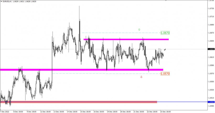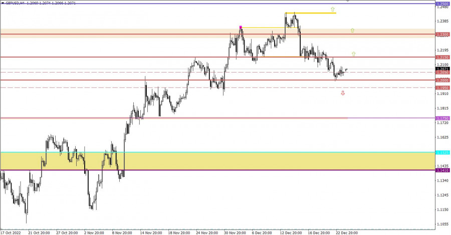 Заказы на товары длительного пользования в Соединенных Штатах сократились на 2,1%, при том что прогнозировали их снижение лишь на 0,6%. На этом статистика по США не закончилось, в период конца европейской сессии опубликовали показатели по продажи нового жилья, где данные вышли лучше прогноза. Продажи жилья на первичном рынке, исходя из прогнозов должны были уменьшиться на 5,0%, однако они выросли на 5,8%. Как рынок реагировал на статистические данные? В общем плане никак. Участники рынка накануне Рождества отказались проявлять активность. Разбор торговых графиков от 23 декабряВалютная пара EURUSD вторую неделю движется в рамках бокового канала 1.0580/1.0660. Это движение указывает не просто на характерную неопределенность среди участников рынка, но и на процесс накопления торговых сил. В то же время стоит учесть тот факт, что мы уже находимся на финишной неделе, год близится к концу, а это означает, что активность трейдеров снижена. Валютная пара GBPUSD в стадии коррекции от пика восходящего цикла достигла психологического уровня 1.2000. Вследствие чего возникло сокращение объема коротких позиций, на рынке возник отскок от уровня поддержки. Стоит отметить, что масштаб ослабления фунта стерлингов в периоде с 15 по 22 декабря составил практически 450 пунктов. Это могло стать техническим сигналом о его перепроданности во внутридневном периоде. Экономический календарь на 26 декабряСегодня в связи с католическим Рождеством торгов условно нет, ввиду того что все основные биржевые площадки закрыты. Торги постепенно начнутся во вторник 27 декабря по обычному расписанию. Отсутствие на рынке ключевых игроков приведет к сокращению торговых объемов, это в свою очередь скажется на волатильности. Торговый план – ЕВРО/ДОЛЛАР 26 декабряЗацикленный боковой ход может служить основой для будущих движений. В данном случае стоит выждать удержание цены за пределами той или иной границы диапазона. В итоге будет получен технический сигнал пробоя, который укажет на последующий ход цены. Видение текущей ситуации в плане технического анализа остается прежней: Восходящий сценарий будет рассмотрен трейдерами в случае удержания цены выше отметки 1.0670 в четырехчасовом периоде. Этот шаг усилит длинные позиции, что приведет к обновлению локального максимума восходящего цикла. Нисходящий сценарий будет принят в работу в случае удержания цены ниже значения 1.0570 в четырехчасовом периоде. Что может привести к возвращению цены в предел уровня 1.0500. Торговый план – ФУНТ/ДОЛЛАР 26 декабряВ случае если район психологического уровня сумеет сдержать напор продавцов может возникнуть поэтапный рост стоимости английской валюты. В этом случае первоочередной отметки перед покупателями может стать уровень 1.2150. Что касается последующего нисходящего хода в цикле коррекции, то технический сигнал о пролонгации возникнет в момент удержания цены ниже значения 1.1950 в четырехчасовом периоде.