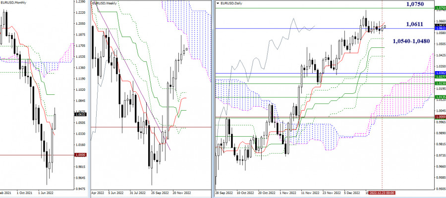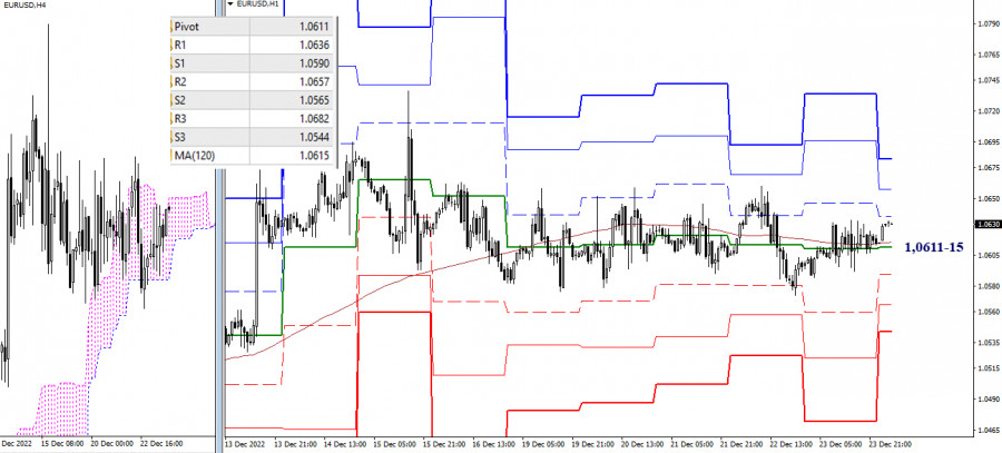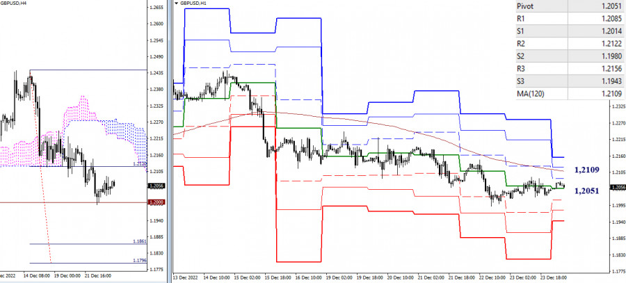 EUR/USD и GBP/USD 26 декабря – рекомендации технического анализаИнстаФорекс - Instaforex, 2 года назад EUR/USD Старшие таймфреймы Диапазон движения в прошлую неделю был небольшим. Пара консолидировалась в районе месячного уровня 1,0611. На текущий момент ситуация неопределённости сохраняется, а уровни, являющиеся ориентирами на случай развития движения, остаются на своих местах. Для игроков на повышение ближайшим ориентиром по-прежнему является сопротивление нижней границы недельного облака (1,0750). Интересы игроков на понижение при снижении могут упереться в поддержки дневного креста Ишимоку (1,0540 – 1,0480 – 1,0419). Н4 – Н1 Основное преимущество в момент анализа можно обозначить на стороне игроков на повышение, так как пара работает выше ключевых уровней, которые продолжают сохранять горизонтальное положение, располагаясь сегодня в районе 1,0611-15 (центральный Пивот-уровень дня + недельная долгосрочная тенденция). Горизонтальное расположение ключевых уровней говорит о том, что неопределённость по-прежнему доминирует. Дополнительными ориентирами для развития движения сегодня внутри дня являются сопротивления классических Пивот-уровней (1,0636 – 1,0657 – 1,0682) и поддержки классических Пивот-уровней (1,0590 – 1,0565 – 1,0544). *** GBP/USD Старшие таймфреймы Фунт на прошлой неделе продолжил снижение, но обозначил торможение, встретив поддержку заключительного уровня дневного креста Ишимоку (1,2032). Пробой поддержки и ликвидация дневного золотого креста Ишимоку основная задача игроков на понижение. Далее последует снижение в район скопления поддержек 1,1842 – 1,1762, где объединились недельные и месячные уровни. Сопротивления сейчас можно обозначить на пройденных ранее уровнях 1,2111 – 1,2218 – 1,2302 – 1,2454. Н4 – Н1 На младших таймах пара продолжает работать в зоне коррекции, используя сейчас поддержку и притяжение центрального Пивот-уровня (1,2051). Ключевое сопротивление, определяющее действующий баланс сил, сегодня расположено на 1,2109 (недельная долгосрочная тенденция). В случае новой активности игроков на понижение основной задачей для них будет являться восстановление нисходящего тренда, через надёжное закрепление ниже 1,1992. *** При техническом анализе ситуации используются: старшие таймфреймы – Ichimoku Kinko Hyo (9.26.52) + уровни Фибо Киджун Н1 – Pivot Points (классические) + Moving Avarage 120 (недельная долгосрочная тенденция) Материал предоставлен компанией InstaForex - www.instaforex.com |