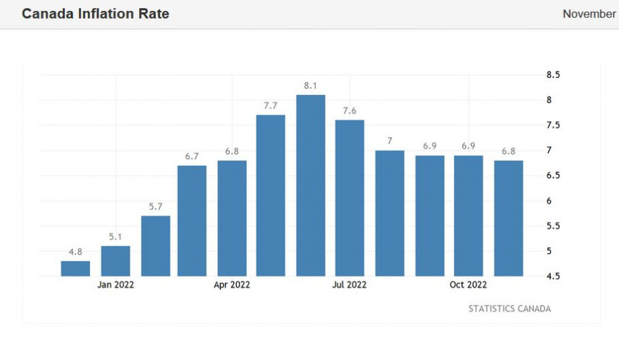 USD/CAD. Канадцу не до праздников: луни укрепляет свои позицииИнстаФорекс - Instaforex, 2 года назад Канадский доллар в паре с американской валютой продолжает укреплять свои позиции, отыгрывая события прошлой недели. Луни проявляет активность даже сейчас, когда практически все валютные пары мажорной группы впали в зимнюю спячку. Пара usd/cad постепенно сползает к основанию 35-й фигуры, к ближайшему уровню сопротивления, который расположен на отметке 1,3505 (линия Kijun-sen на таймфрейме D1). Безусловно, волатильность по паре сейчас гораздо ниже, чем в допраздничный период, но, в отличие от многих других валютных пар (которые торгуются в узком ценовом диапазоне), цена usd/cad медленно, но уверенно движется на юг. Такая ценовая динамика обусловлена двумя факторами. Во-первых, канадские инфляционные индикаторы замедляются менее быстрыми темпами относительно ожиданий большинства экспертов. Опубликованный на прошлой неделе релиз вышел в зелёной зоне, перерисовав таким образом фундаментальную картину по паре usd/cad. Во-вторых, луни пользуется ситуативной слабостью американского доллара, которая в свою очередь обусловлена неожиданно оптимистичными новостями из Китая. На фоне коронавирусного апокалипсиса (который, по информации многих мировых информационных агентств, происходит в КНР), муссируется противоположная информация – о том, что Пекин готов резко ослабить карантинные ограничения, де-факто полностью отказавшись от политики «нулевой терпимости» к COVID. Такой неожиданный поворот сюжета снизил спрос на безопасный доллар ввиду общего спада антирисковых настроений на рынках. Впрочем, здесь мы можем делать соответствующие выводы лишь анализируя динамику фондовых индексов крупнейших стран Азиатско-Тихоокеанского региона – остальные биржи – в Европе, Штатах, Австралии, Гонконге – были вчера закрыты. Но факт остаётся фактом: индекс доллара США остаётся под давлением, в рамках 103-й фигуры. Но вернёмся к канадским релизам. Как уже было сказано выше, инфляционный отчёт, опубликованный в Канаде на прошлой неделе, оказался в зелёной зоне. Общий индекс потребительских цен в годовом выражении вышел на отметке 6,8% при прогнозе спада до 6,7%. На протяжении предыдущих двух месяцев ИПЦ выходил на уровне 6,9%. С одной стороны, если оценивать динамику инфляции в масштабах всего года, то здесь можно говорить о нисходящей тенденции, после достижения пика (8,1%) в июне. С другой стороны, в течение последних четырёх месяцев темпы замедления инфляции заметно снизились, и можно сказать, свелись к нулю. Судите сами: в августе индекс был на уровне 7% (г/г), в сентябре и октябре – 6,9%, и, наконец, в ноябре – 6,8%. Фактически общая инфляция с конца лета прекратила замедляться, оставаясь на неприемлемо (для Банка Канады) высоких значениях. Базовый индекс потребительских цен (который исключает волатильные цены на продукты питания и энергоносители), в годовом выражении в ноябре остался на отметке 5,8%, как и в предыдущем месяце. И здесь необходимо напомнить итоги декабрьского заседания Банка Канады, которые де-факто оказались не в пользу луни. Регулятор дал понять, что будет в дальнейшем оценивать необходимость дальнейшего увеличения ключевой ставки «для восстановления баланса спроса и предложения и возвращения инфляции к целевому значению». Одновременно с этим глава ЦБ Тиф Маклем на про