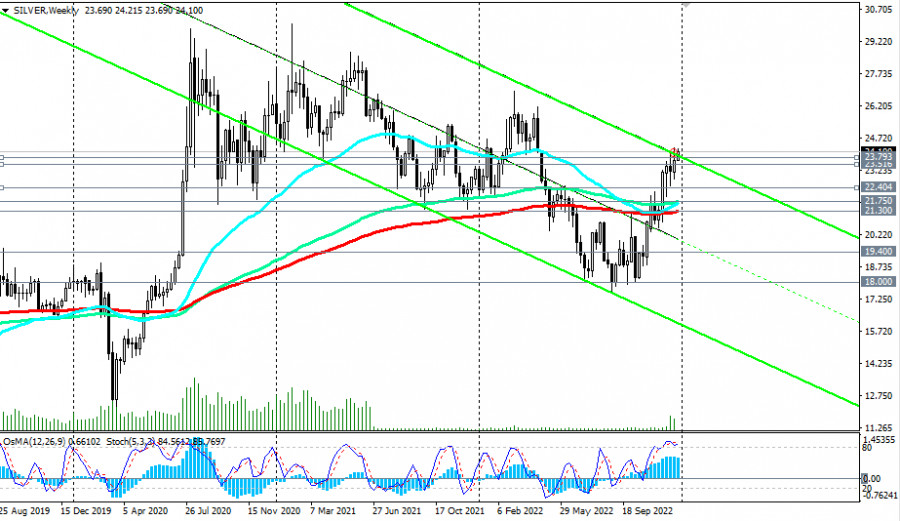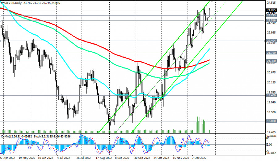 SILVER: технический анализ и торговые рекомендации на 27.12.2022ИнстаФорекс - Instaforex, 2 года назад С середины октября, когда цена на серебро опустилась к ключевому уровню поддержки 18.00 (ЕМА200 на месячном графике XAG/USD или SILVER), данный инструмент развивает восходящую динамику, сильно коррелируя с начавшимся тогда же ослаблением доллара. На этом восходящем импульсе в прошлом месяце цена пробила сильный долгосрочный уровень сопротивления 21.30 (ЕМА200 на недельном графике SILVER), а сегодня, на момент публикации данной статьи, торгуется вблизи отметки 24.10 долларов за тройскую унцию. После пробоя локального, этого месяца, максимума 24.25 цена направится в сторону верхней границы восходящего канала на дневном графике SILVER и к отметке 24.55. Отметим, что на недельном графике Стохастик находится в зоне перекупленности, не желая оттуда выходить, что также говорит о сильном бычьем импульсе. Как мы отметили в нашем сегодняшнем «Фундаментальном анализе», «у серебра есть большее пространство для роста котировок». И все же мы должны предположить и альтернативный сценарий. А он будет заключаться в снижении цены. Первыми сигналами для начала реализации данного сценария станет пробой краткосрочных уровней поддержки 23.80 (ЕМА200 на 15-минутном графике) и 23.52 (ЕМА200 на 1-часовом графике). Пробой ключевого уровня поддержки 21.30 вернет данный инструмент (XAG/USD или SILVER) в зону медвежьего рынка. А пока же предпочтительными являются длинные позиции. *) об особенностях торговли инструментом SILVER (XAG/USD) см. в XAG/USD или SILVER: валютная пара (характеристики, рекомендации) Уровни поддержки: 24.00, 23.80, 23.52, 22.40, 21.75, 21.30, 19.40, 18.00 Уровни сопротивления: 24.55, 25.00 Торговые рекомендации Sell Stop 23.66. Stop-Loss 24.27. Take-Profit 23.52, 22.40, 21.75, 21.30, 19.40, 18.00 Buy Stop 24.27. Stop-Loss 23.66. Take-Profit 24.55, 25.00, 26.00 Материал предоставлен компанией InstaForex - www.instaforex.com |
