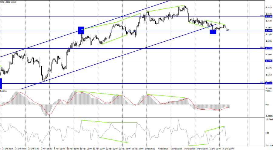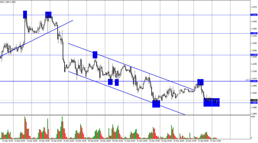 GBP/USD. 28 декабря. Британец радует в последние дни 2022 годаИнстаФорекс - Instaforex, 2 года назад Добрый день, уважаемые трейдеры! На часовом графике пара GBP/USD во вторник выполнила рост к уровню коррекции 127,2% - 1,2111, отбой от него, разворот в пользу американской валюты и падение к уровню 1,2007. Таким образом, в течение дня она отработала два важных уровня и около каждого образовала сигнал, который позволял трейдерам открывать сделки. Закрепление под уровнем 1,2007 позволит ожидать дальнейшее падение в направлении следующего уровня 1,1883. Отбой – на рост в направлении 1,2111. Несмотря на то что британец провел последние трое суток между уровнями 1,2007 и 1,2111, а также вышел из нисходящего трендового коридора, я не могу сказать, что движение горизонтальное. Если сегодня закрытия под уровнем 1,2007 не случится, тогда основным вариантом на ближайшую неделю станет боковик. Но я все же рассчитываю на продолжение падения, так как евро находится в боковике уже почти две недели, а фунт все это время активно падает. Однако праздники могут оказать свое негативное влияние на активность трейдеров и по британцу. Также хочу отметить, что на 4-часовом графике котировки выполнили падение к важному уровню 1,2008, который имеет свой аналог и на часовом графике. И преодолеть этот уровень будет вдвойне сложно. Что касается информационного фона, то его сейчас нет. Время от времени приходит информация от различных информагентств или банков, чьи аналитики высказывают свое мнение в отношении перспектив той или иной валюты, экономики той или иной страны. В отношении фунта многие считают, что он продолжит падение. В пользу этого варианта также говорит важное закрытие под восходящим трендовым коридором на 4-часовом графике. Я поддерживаю эту точку зрения. На 4-часовом графике пара выполнила закрытие под восходящим трендовым коридором и падение к уровню 1,2008. Закрепление котировок под восходящим трендовым коридором я считаю важнейшим моментом, так как теперь настроение трейдеров меняется на «медвежье». Отбой от уровня 1,2008 работает пока в пользу британца, но его рост в направлении уровня 1,2250 может быть ограниченным. Закрепление курса пары под 1,2008 повысит шансы на продолжение падения. Отчет Commitments of Traders (COT):