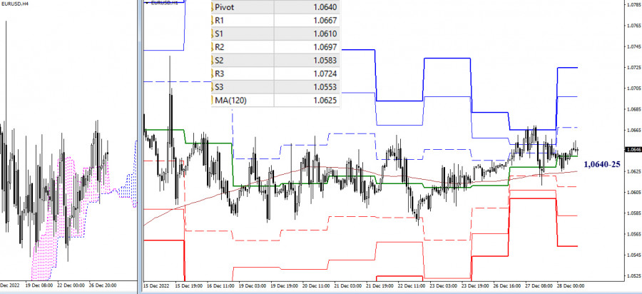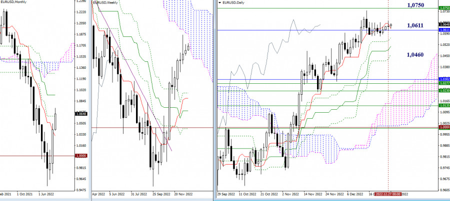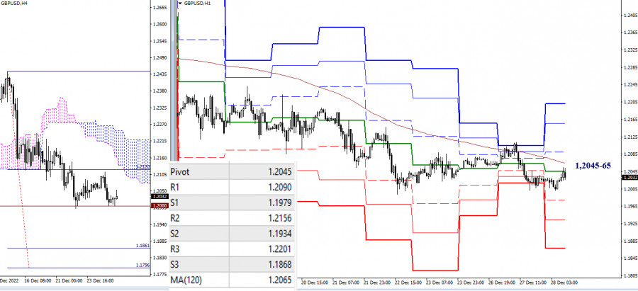 EUR/USD и GBP/USD 28 декабря – рекомендации технического анализаИнстаФорекс - Instaforex, 2 года назад EUR/USD Старшие таймфреймы Пара остаётся привязанной к месячному уровню 1,0611, работая в его зоне притяжения и влияния. Для появления новых перспектив евро сейчас нужно не просто выйти из бокового движения, сложившегося в достаточно узком диапазоне, но и осуществить пробой ближайшего сопротивления 1,0750 (нижняя граница недельного облака) или ликвидировать дневной золотой крест, заключительные уровни которого сегодня расположены на рубежах 1,0566 – 1,0513 – 1,0460. Н4 – Н1 Консолидация на старших таймах привела к тому, что пара закручивается вокруг ключевых уровней младших таймфреймов, но не изменяет их горизонтального положения. В настоящий момент ключевые уровни являются поддержками и расположены в районе 1,0640-25 (недельная долгосрочная тенденция + центральный Пивот-уровень). Для развития восходящего движения ориентирами внутри дня служат сопротивления классических Пивот-уровней (1,0667 – 1,0697 – 1,0724). Закрепление ниже ключевых уровней (1,0640-25) изменит действующий баланс сил, перспективы сместятся на сторону усиления медвежьих настроений. Внимание и интерес игроков на понижение в этом случае будет направлено на прохождение поддержек классических Пивот-уровней (1,0610 – 1,0583 – 1,0553). *** GBP/USD Старшие таймфреймы Вчера игроки на понижение исполнили небольшой ретест пройденных уровней, но при этом не смогли покинут зону торможения. Возможно, консолидация сохранится. В случае обновления минимального экстремума (1,1992) следующей задачей для игроков на понижение станет тестирование зоны поддержек из нескольких сильных уровней самых старших таймов в районе 1,1842 – 1,1762. Ближайшие рубежи сопротивлений в сложившейся ситуации сегодня можно отметить в районе 1,2099 – 1,2159, далее 1,2226 и 1,2302. Н4 – Н1 Пара вернулась к исторической поддержке 1,2000. Её пробой вернёт актуальность поддержкам классических Пивот-уровней (1,1979 – 1,1934 – 1,1868). Если же игроки на повышение сумеют сегодня закрепиться выше ключевых уровней, расположенных сейчас в районе 1,2045-65 (недельная долгосрочная тенденция + центральный Пивот-уровень), то действующий баланс сил может измениться, а ориентирами для развития подъёма станут 1,2090 – 1,2156 – 1,2201 (классические Пивот-уровни). *** При техническом анализе ситуации используются: старшие таймфреймы – Ichimoku Kinko Hyo (9.26.52) + уровни Фибо Киджун Н1 – Pivot Points (классические) + Moving Avarage 120 (недельная долгосрочная тенденция) Материал предоставлен компанией InstaForex - www.instaforex.com |