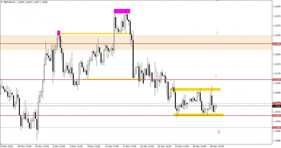 Учимся и анализируем, торговый план для начинающих трейдеров EURUSD и GBPUSD 29.12.22ИнстаФорекс - Instaforex, 2 года назад Детали экономического календаря от 28 декабря Единственное, на что можно было обратить внимание, так это на индекс незавершенных продаж на рынке недвижимости Соединенных Штатов. Прогнозировали, что в ноябре спад составит -0,8%, однако он был -4,0%. Несмотря на негативные данные, доллар США чувствовал себя комфортно на рынке, словно трейдеры не обращают внимания на статистические данные. Разбор торговых графиков от 28 декабряВалютная пара EURUSD с хирургической точностью отработала верхнюю границу бокового канала 1.0570/1.0670 в качестве сопротивления. В результате возникло сокращение объема длинных позиций по евро, что привело к отскоку цены по нисходящей траектории. Валютная пара GBPUSD в период минувшего дня проявила высокую активность, но ни к чему кардинальному это не привело. В моменте спекулянтам удалось разогнать котировку на амплитуду в 100, что стало самым быстрым изменением цены за неделю. В сухом остатке котировка вернулась в район психологического уровня 1.2000. Экономический календарь на 29 декабряСегодня ожидается публикация еженедельных данных по заявкам на пособие по безработице, где прогнозируют рост их общего объема. Это отрицательный фактор для рынка труда США, но изменения незначительные, исходя из прогнозов. Детали статистических данных: Объем повторных заявок на пособие может незначительно сократиться, с 1 672тыс. до 1 671 тыс. Объем первичных заявок на пособие может увеличиться с 216 тыс. до 220тыс. Временной таргетинг Заявки на пособие по безработице в США – 16:30 по МСК Торговый план – ЕВРО/ДОЛЛАР 29 декабряИсходя из того, что информационно-новостной поток условно пуст, а год близится к завершению, трейдеры менее активны. Действующее колебание может продлиться как минимум до начала января. Что касается торговых тактик, то оптимальной стратегией считается метод пробоя той или иной границы действующего диапазона. Конкретизируем вышесказанное: Восходящий сценарий будет рассмотрен трейдерами в случае удержания цены выше отметки 1.0670 в четырехчасовом периоде. Этот шаг усилит длинные позиции, что приведет к обновлению локального максимума восходящего цикла. Нисходящий сценарий будет принят в работу в случае удержания цены ниже значения 1.0570 в четырехчасовом периоде. Что может привести к возвращению цены в предел уровня 1.0500. Торговый план – ФУНТ/ДОЛЛАР 29 декабряИсходя из движения цены в рамках торговой недели, можно сказать, что на рынке имеет место боковой ход. В качестве нижней границы служит психологический уровень 1.2000, в то время как верхняя граница 1.2100. В данной ситуации оптимальной тактикой считается выход за пределы той или иной границы застоя, что в перспективе может указать на последующий ценовой ход на рынке. Для того чтобы избежать ложного пробоя и попасть в основной цикл движения, необходимо взять поправку относительно каждой границы в размере 50 пунктов. В этом случае трейдеры приступят к работе относительно одного из значений: 1.1950 при нисходящем сценарии и 1.2150 при восходящем развитии цены.