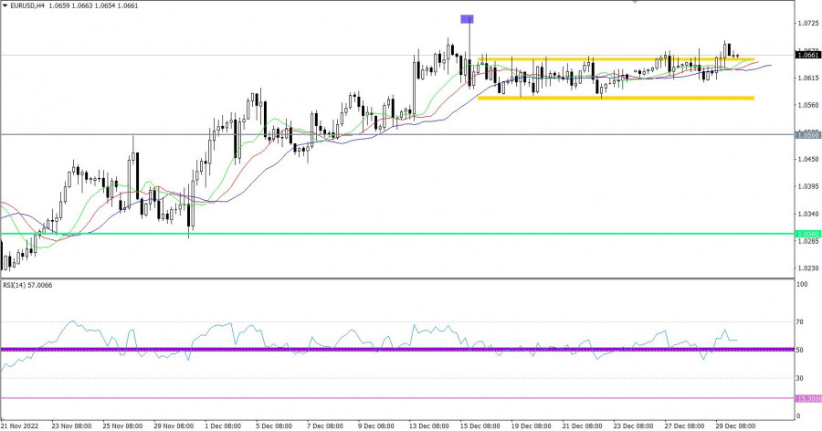 Горящий прогноз по EUR/USD от 30.12.2022ИнстаФорекс - Instaforex, 2 года назад Завершающим аккордом в уходящем году единая европейская валюта выдала заметный рост. Даже выскочив за верхнею границу диапазона, в котором он торгуется уже почти две недели к ряду. Правда закрепиться так и не удалось, и в итоге она откатилась аккурат к верхней границе коридора. А поводом стали крайне слабые данные по заявкам на пособия по безработице в Соединенных Штатах. Так, число первичных обращений выросло на 9 тыс., вместо ожидавшихся 4 тыс. Число же повторных обращений, которое должно было сократиться на 1 тыс., увеличилось на 11 тыс. Правда не обошлось без пересмотра предыдущих данных в лучшую сторону, но всего лишь на 2 тыс. Так что в целом, нет ничего удивительного в том, что единая европейская валюта смогла несколько усилить свои позиции. Но стоит обратить внимание на тот факт, что ей так и не удалось выйти за рамки коридора. Следовательно потенциал ее роста крайне ограничен. И дело тут не только в конце года и отсутствии большинства участников рынка. Дело в том, что к инвесторам постепенно приходит осознание итогов минувших заседаний Европейского Центрального Банка и Федеральной Резервной Системы. И рождественские каникулы как раз используются в том числе и для пересмотра ожиданий и планов на будущий год. Судя по всему, ни о каком диспаритете процентных ставок, в пользу единой европейской валюты, в будущем году никто уже и говорить не будет. И вполне возможно, что еще до лета мы вновь увидим паритет с долларом. Число повторных заявок на пособия по безработице (Соединенные Штаты): Валютная пара EURUSD в четверг сумела проявить локальную активность, вследствие которой был пробит боковой канал 1.0570/1.0670 по восходящей траектории. Радость покупателей продлилась недолго, сразу после пробоя возник обратный ход, возвращая котировку за соответствующую границу. В данном случае наблюдается отчетливый восходящий настрой, но торговых объемов явно не хватает на рынке для полноценного движения. Технический инструмент RSI H4 движется в верхней области индикатора 50/70, что может сигнализировать о преобладающем восходящем настрое среди участников рынка. Скользящие линии MA на Alligator H4 направлены вверх, но с учетом того, что котировки все еще находится в рамках флета, сигнал может быть нестабильным. Ожидания и перспективы Стабильное нахождение цены выше значения 1.0670 в перспективе может усилить длинные позиции, что приведет к пролонгации восходящего цикла. В этом случае действующее колебание цены может быть расценено трейдерами как паттерн "пробой-откат", который усиливает позицию в сторону пробоя. Что касается нисходящего сценария, то он рассматривается в плане возобновления колебания в рамках ранее пройденного флета. Комплексный индикаторный анализ в краткосрочном и внутридневном периодах имеют сигнал к покупке ввиду локального пробоя верхней границы флета. Материал предоставлен компанией InstaForex - www.instaforex.com |
