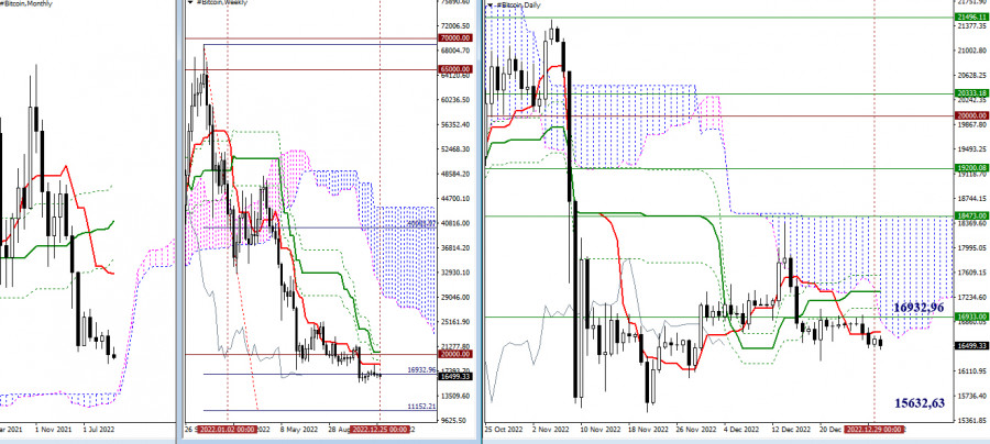 Bitcoin итоги и перспективыИнстаФорекс - Instaforex, 2 года назад Bitcoin Биткоин, начавший год на рубеже 46254,27, обозначил открытие последнего рабочего дня 2022 года на 16591,93. В итоге за год биткоин похудел более чем в 2,5 раза. Результат неутешительный, так как тенденции для перелома ситуации на рынке пока не сформированы, а вот целевые понижательные ориентиры по-прежнему присутствуют, например уровень 100% отработки недельной цели на пробой облака (11152,21), к которому биткоин устремится случае обновления минимального экстремума текущей коррекции (15632,63). Далее внимание будет направлено на взаимодействие с месячным облаком Ишимоку (10067,78). Пробой месячного облака это возможность формирования новой медвежьей цели. В настоящий момент пара находится в зоне притяжения первого целевого ориентира недельной цели (16932,96) и дневного краткосрочного тренда (16700,06). Ближайшими сопротивлениями служат дневной среднесрочный тренд (17315,93) и заключительный уровень дневного креста Ишимоку (17562,34). Рассматривать появление новых целей и перспектив можно будет после того, как биткоин преодолеет барьер, расположенный сейчас в районе 18470, где объединили свои усилия верхняя граница дневного облака и недельный краткосрочный тренд. Далее задачами игроков на повышение будут являться пробой психологического уровня 20000, исполнение дневной цели на пробой облака и ликвидация недельного мёртвого креста Ишимоку. Выполнение данных задач может послужить более надёжному, значимому и долгоиграющему восстановлению биткоина в будущем. *** При техническом анализе ситуации используются: старшие таймфреймы – Ichimoku Kinko Hyo (9.26.52) + уровни Фибо Киджун Н1 – Pivot Points (классические) + Moving Avarage 120 (недельная долгосрочная тенденция) Материал предоставлен компанией InstaForex - www.instaforex.com |
