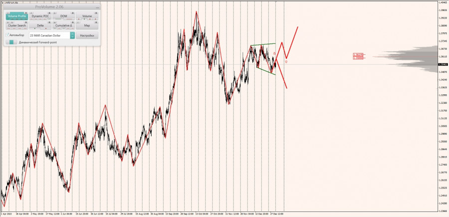 Область выгодных цен на продажу с точки зрения маржинального обеспечения, располагается между зонами 1/4 и 1/2 построенными от минимума 27.12.2022.