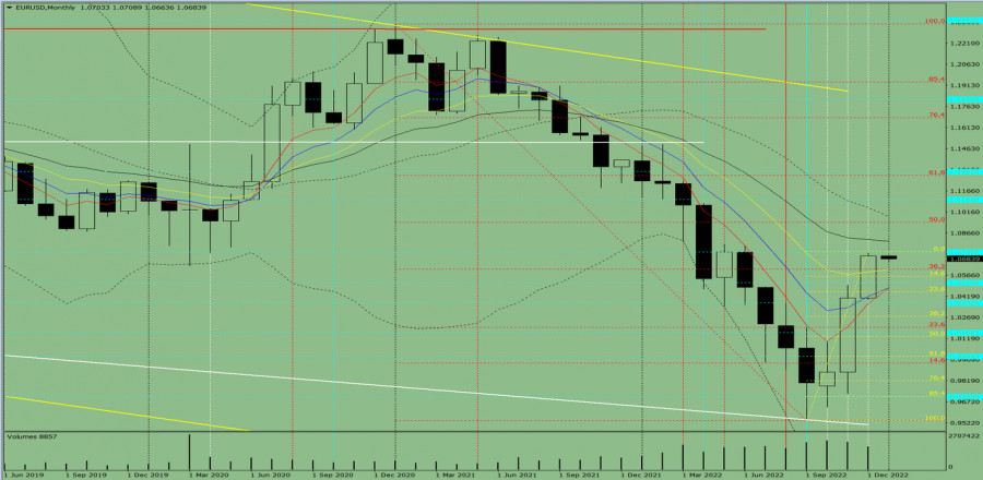 Технический анализ на январь 2023 года по валютной паре EUR/ USDИнстаФорекс - Instaforex, 2 года назад Трендовый анализ В январе от уровня 1.0706 (закрытие декабрьской месячной свечи) движение вверх до цели 1.0941 – откатный уровень 50.0% (красная пунктирная линия). При тестировании этого уровня – продолжение движения вверх, исторический уровень сопротивления – 1.1104 (голубая пунктирная линия). При тестировании этого уровня возможен откат вниз. Рис. 1 (месячный график). Индикаторный анализ: - индикаторный анализ – вверх; Вывод по комплексному анализу – вероятней всего, верхняя работа. Общий итог расчёта свечи валютной пары EUR/ USD по месячному графику: цена, вероятно, будет иметь восходящую тенденцию с отсутствием первой нижней тени (первая неделя месяца – белая) у месячной белой свечи и отсутствием второй верхней тени (последняя неделя – белая). Общий сценарий: от уровня 1.0706 (закрытие декабрьской месячной свечи) движение вверх до цели 1.0941 – откатный уровень 50.0% (красная пунктирная линия). При тестировании этого уровня – продолжение движения вверх, исторический уровень сопротивления – 1.1104 (голубая пунктирная линия). При тестировании этого уровня возможен откат вниз. Альтернативный сценарий: от уровня 1.0706 (закрытие декабрьской месячной свечи) движение вверх до цели 1.0941 – откатный уровень 50.0% (красная пунктирная линия). При тестировании этого уровня откатное движение цены вниз, 21 средняя ЕМА – 1.0809 (чёрная тонкая линия). Материал предоставлен компанией InstaForex - www.instaforex.com |