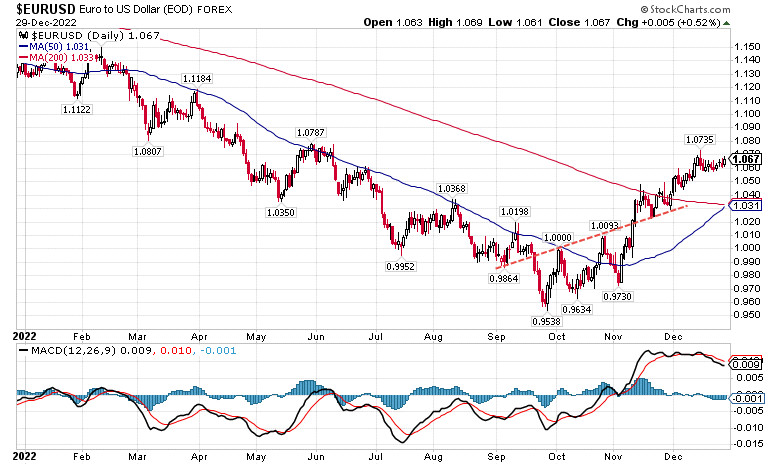 Перспективы евро, доллара и золота в новом,+ 2023 годуИнстаФорекс - Instaforex, 2 года назад Здравствуйте, уважаемые коллеги! В канун нового года, всегда принято подводить итоги и намечать перспективы на будущий год, также очень интересно посмотреть какие прогнозы сбылись, а какие так и остались всего лишь нереализованными желаниями. Не буду изменять этой традиции и посмотрю на то, что я прогнозировал в канун 2022 года, что было реализовано, а что осталось лишь мечтой. Валютный рынок - Курс доллара и евро. В конце 2021 года, я предполагал, что доллар должен вырасти, а евро упасть. В краткосрочном горизонте предполагалось, что доллар вырастет ещё на 4%, евро же, в свою очередь, упадёт на такую же величину. В то время индекс доллара #DXY находился возле уровня 96. Также делалось предположение, что в силу повышения процентных ставок ФРС США, курс EURUSD может продолжить дальнейшее снижение к уровню 1.09-1.10. Так оно собственно говоря и произошло уже через пару месяцев. Краткосрочный прогноз был реализован уже в марте, после чего начался в буквальном смысле взлёт доллара, где американская валюта повысилась на 15% к пулу иностранных валют. Соответственно евро снизился вплоть до значения 0.9535 (рис.1). При этом следует сказать, что в уходящем году евро на редкость легко прогнозировался, что позволяло неплохо на нем зарабатывать. Рис.1: Техническая картина курса EURUSD. Дневной тайм. Как видим, несмотря на всю сложность, прогноз был полностью реализован, поэтому я наберусь смелости предположить, что в первой половине будущего года, курс EURUSD вернётся к уровню 1.10. Дальнейшее движение пока сложно прогнозировать, но есть немалая вероятность того, что в 2023 году мы с вами увидим курс европейской валюты и на значении 1.20. Основанием для такого движения является сценарий предполагающий, что в 2023 году ставки в еврозоне будут повышаться быстрее, чем ставки в долларе США, т.к. вполне возможно ФРС закончит цикл повышения уже летом следующего года. В свою очередь инфляция в еврозоне ещё даже не начала замедляться и вероятно может достичь уровня 20% уже в первом полугодии 2023 года. Именно такой прогноз дал на днях член правления ЕЦБ, председатель Центробанка Литвы. Напомню читателям, что сейчас, целью денежно-кредитной политики (ДКП) является инфляция установленная маастрихскими критериями на уровне 2% в среднесрочной перспективе год — полтора. При этом, глава Европейского центрального банка Кристин Лагард явно лукавит, говоря, что это действия России на Украине привели к масштабному всплеску инфляции. Дело в том, что Центробанк затянул с повышением ставок и начал процесс ужесточения ДКП только в феврале 2022 года, в то время когда инфляция уже составляла 7%. Ставку надо было начинать повышать в декабре 2021 года, а не в мае 2022. Справедливости ради надо отметить, что не все мои прогнозы сбылись с вероятность 100%. Например, в конце прошлого года, предполагалось, что в связи с повышением ставок, в ряде стран еврозоны может наступить дефолт, однако этого пока не произошло, но в целом такая опасность является вполне реальной и в наступающем году. Особенно учитывая проблемы с доходностью государственных казначейских облигаций некоторых стран Европы. Так, например, 10-летние казначейские облигации Италии, сейчас приносят своим владельцам не только 4.6% годовых, но и головную боль, предполагающую не нуле