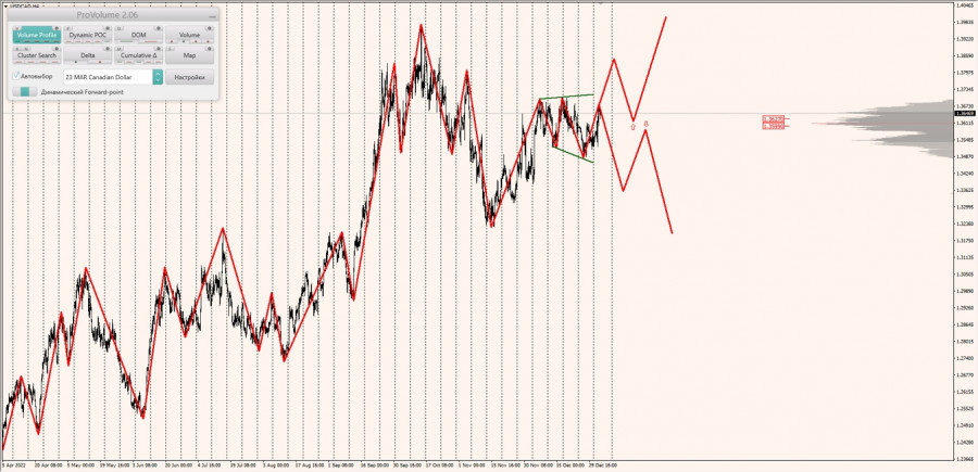 Долгосрочная тенденция: временная неопределенность. Максимальное скопление объемов текущего контракта расположено в диапазоне по котировкам 1.35990-1.36270. В настоящий момент по паре совершаются инвестиционные операции выше, указывая на силу покупателей.