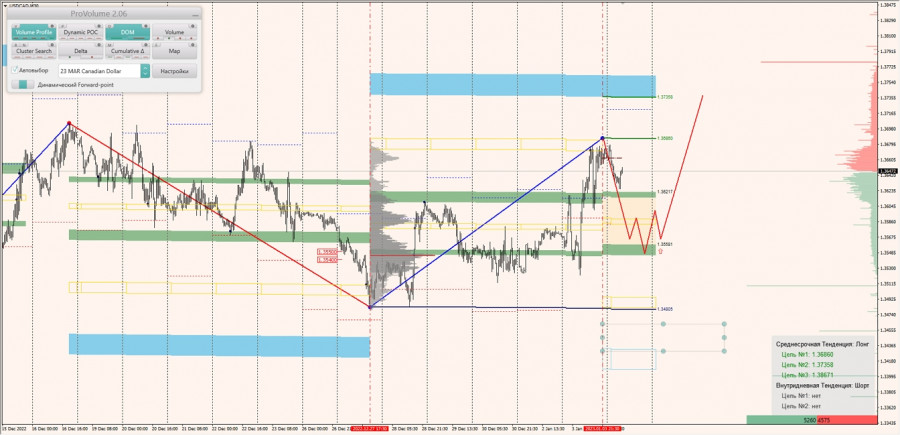 Среднесрочная тенденция: в лонг. Максимальное скопление объемов среднесрочной тенденции расположено в диапазоне по котировкам 1.35400-1.35500. В настоящий момент по паре совершаются инвестиционные операции выше, указывая на силу покупателей.