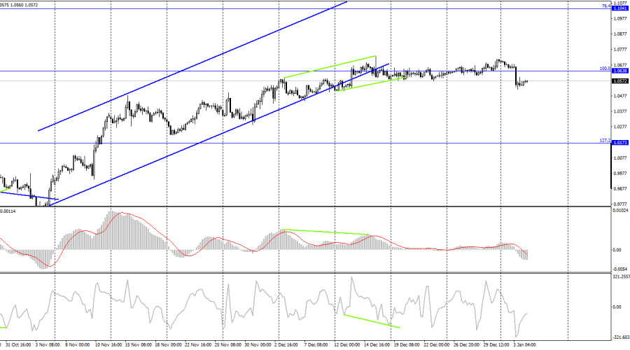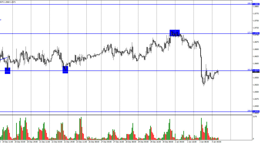 EUR/USD. 4 января. Резкое наступление медведей пробудило евровалютуИнстаФорекс - Instaforex, 2 года назад Добрый день, уважаемые трейдеры! Пара EUR/USD во вторник продолжила процесс падения после отбоя от уровня коррекции 127,2% - 1,0705 и к концу дня выполнила закрепление под уровнем Фибо 161,8% - 1,0574. Таким образом, падение европейской валюты может теперь продолжаться в направлении следующего уровня коррекции 200,0% - 1,0430. Закрепление курса пары над уровнем Фибо 161,8% сработает в пользу валюты ЕС и некоторого роста в направлении уровня 1,0705. Но на текущий момент котировки покинули боковой коридор, что очень важно. Информационный фон вторника на первый взгляд был достаточно спокойным и слабым. Однако в течение дня трейдеры торговали очень активно. Остается только понять, был ли причиной такой активности информационный фон. По большому счету, единственным отчетом дня выступал индекс деловой активности в секторе производства США. Он снизился в декабре с 47,7 пункта до 46,2, что является негативной тенденцией. Таким образом, этот отчет никак не мог вызвать активизацию трейдеров-медведей, так как доллар вырос во вторник. Некоторые аналитики отмечают также отчет по инфляции в Германии, который показал заметное снижение, но, на мой взгляд, этот отчет не связан с падением европейской валюты, хотя бы потому, что падение началось за несколько часов до его выхода. Таким образом, я могу сделать вывод, что информационный фон никакого влияния на настроение трейдеров не оказал. Я считаю, что причина сильных движений более проста и банальна – праздники закончились, трейдеры возвращаются на рынок, а мы видим более сильные движения уже не в боковом коридоре. Рынок просто вернулся в непраздничное состояние. На этой неделе впереди нас ждут более важные отчеты, поэтому движения до конца недели могут быть достаточно сильными. Особое внимание рекомендую обратить на отчеты по инфляции в ЕС и рынку труда в США, которые выйдут в пятницу. На 4-часовом графике пара выполнила разворот в пользу американского доллара и закрепление под уровнем Фибо 100,0% - 1,0638. Само по себе закрепление под этим уровнем не имеет статуса сигнала, но мы помним, что на часовом графике пара выполнила закрытие под боковым коридором, поэтому процесс падения может быть продолжен в направлении следующего уровня коррекции 127,2% - 1,0173. Отчет Commitments of Traders (COT):