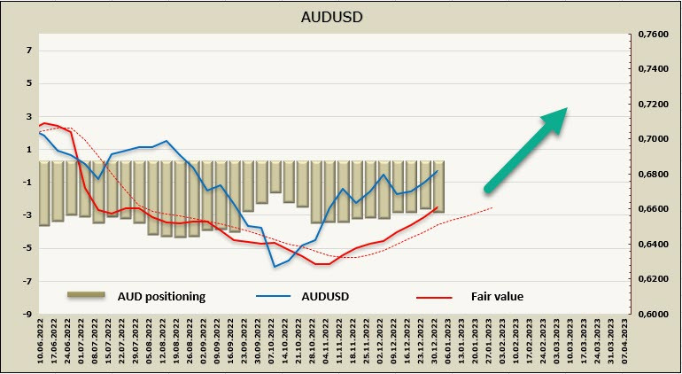 РБНЗ и правительству надо искать способы сдерживания внутренней инфляции, данные по рынку труда за третий квартал показали, что средняя почасовая заработная плата в частном секторе составляет 8,6% в год, что заметно выше уровня инфляции и будет способствовать ее росту. Соответственно, кроме роста ставки до предположительного уровня 5%, будут предприниматься другие меры, чтобы ослабить рост заработной платы для снижения общего потребительского спроса. Если этот процесс пройдет без снижения темпов роста ВВП, можно будет сказать, что Новая Зеландия справляется с кризисом лучше многих других стран, что, в свою очередь, поддержит национальную валюту. На фьючерсном рынке сохраняется минимальное бычье позиционирование, недельные изменения незначительны. Расчетная цена далеко выше долгосрочной средней, однако развернулась вниз, что, возможно, указывает на то, что бычий импульс ослаб и вероятная коррекция. Ближайшая цель – локальный максимум 0.6507, но пока нет никакого драйвера фундаментального характера, рост вряд ли будет выраженным. Поддерживают киви позитивные новости из Китая, против роста – растущие опасения по замедлению мировой экономики. Более вероятным выглядит сценарий торговли в боковом диапазоне, поддержка 0.6193, для ее обновления предпосылок нет. AUDUSD Пара AUDUSD начала 2023г. в том же диапазоне, где провела весь декабрь, и пока нет никаких предпосылок для выхода из этого диапазона. Максимальное значение 0,6893 от 13 декабря было достигнуто вскоре после того, как данные по индексу потребительских цен в США за ноябрь оказались ниже ожиданий, что вызвало массовую распродажу доллара США. Минимум 0,6629 от 20 декабря был достигнут после того, как Банк Японии произвел фурор, удвоив диапазон допуска вокруг целевого уровня по 10-летним облигациям до +/- 0,5%. Характерно, что оба значения, и минимум, и максимум, были достигнуты под влиянием внешних, а не внутренних факторов. РБА крайне осторожно двигает процентную ставку вверх вслед за инфляцией, не допуская возникновения дисбаланса ни в ту, ни в другую сторону. В настоящий момент основной драйвер для аусси – потепление в отношениях с Китаем и возобновление некоторых ранее ограниченных торговых потоков, плюс окончание следования Китаем стратегии нулевой терпимости к ковиду. Оба эти фактора, как ожидается, скажутся положительным образом на торговом балансе Австралии и поддержат валюту. Чистая короткая позиция по AUD, как следует из последнего отчета CFTC, в последнюю неделю старого года незначительно выросла до -2,5 млрд, позиционирование остается медвежьим, но динамика в ту или иную сторону отсутствует. Расчетная цена выше долгосрочной средней и направлена вверх, что дает основания рассчитывать на продолжение роста AUDUSD. Ближайшая цель – обновление локального максимума 0,6895, долгосрочная цель остается прежней – 0.7100/40. Откаты вниз возможны, но они носят коррекционный характер. Материал предоставлен компанией InstaForex - www.instaforex.com |