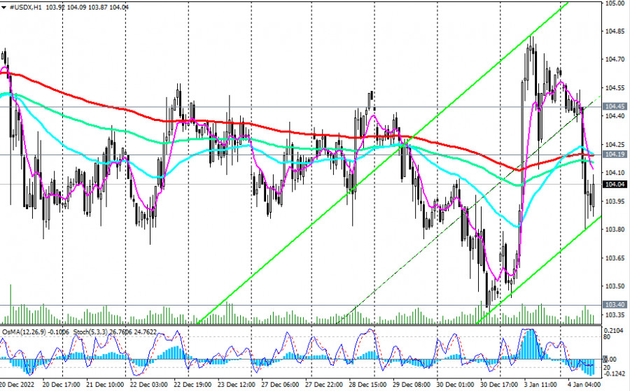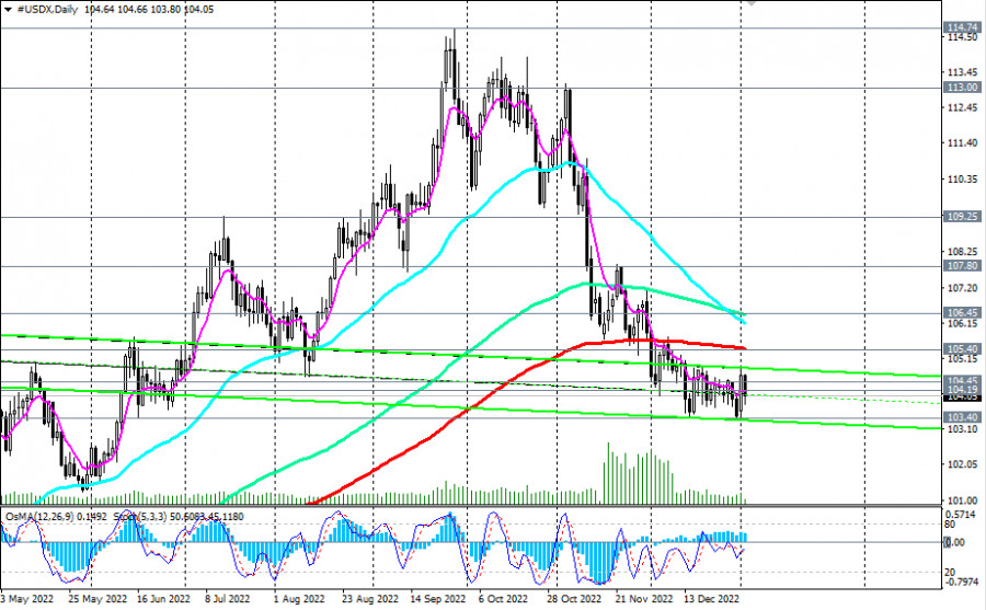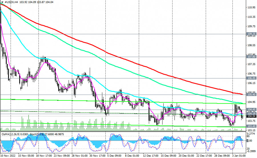 Индекс доллара #USDX: технический анализ и торговые рекомендации на 04.01.2023ИнстаФорекс - Instaforex, 2 года назад Уже с октября доллар и его индекс DXY находятся под давлением. Участники рынка ожидают дальнейшего замедления темпов ужесточения монетарной политики ФРС. Многие экономисты уже прогнозируют, что ФРС снова сократит размер повышения ставки в начале 2023 года, перейдя к повышениям на 0,25% в феврале и марте. А это – предвестник более глубокого падения DXY. С технической же точки зрения индекс доллара (CFD #USDX в торговом терминале МТ4), как мы уже отметили в нашем сегодняшнем «Фундаментальном анализе», торгуется в зоне среднесрочного медвежьего рынка, ниже ключевых уровней сопротивления 105.40 (ЕМА200 на дневном графике), 104.45 (ЕМА50 на недельном графике). Самым первым сигналом для наращивания коротких позиций станет пробой сегодняшнего внутридневного минимума 103.80, а подтверждающим – пробой минимума прошлого месяца 103.36. Дальние цели снижения DXY расположены вблизи отметок 100.00, 98.55 (ЕМА200 на недельном графике). В свою очередь, пробой уровня поддержки 93.00 (ЕМА200 на месячном графике) будет знаменовать слом глобального бычьего тренда DXY. В альтернативном сценарии DXY возобновит рост, вернувшись в зону бычьего рынка, выше уровня сопротивления 105.40. Первыми сигналами для реализации этого сценария станут пробои уровней сопротивления 104.19 (ЕМА200 на 1-часовом графике), 104.45. Пробой уровня сопротивления 106.45 (ЕМА144 на дневном графике) подтвердит сценарий возобновления роста DXY. А пока же и ниже уровней сопротивления 104.45, 104.19 предпочтительными остаются короткие позиции. *) о важных событиях недели см. в Важнейшие экономические события недели 02.01.2023 – 08.01.2023 Уровни поддержки: 103.80, 103.40, 103.00, 102.00, 101.00, 100.00, 98.55, 93.00 Уровни сопротивления: 104.19, 104.45, 105.40, 106.45, 107.80, 109.25