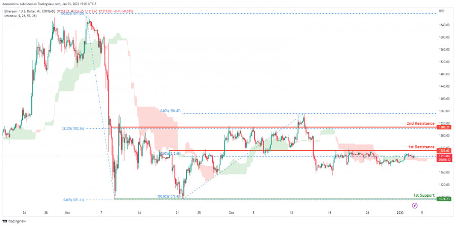 ETH/USD готовится к падению - технический анализ на 04.01.2023ИнстаФорекс - Instaforex, 2 года назад На 4-часовом графике пары ETH/USD преобладает медвежий настрой, поскольку цена опустилась ниже облака Ишимоку, что является признаком медвежьего рынка. Если медвежий импульс продолжится, то цена направится к первому уровню поддержки 1 074,23, где также находится предыдущий локальный минимум. При другом сценарии цена может снова пойти вверх в попытке пробить первую линию сопротивления на отметке 1 231,62, где расположен уровень Фибоначчи 50%. Затем котировка может вырасти до второй линии поддержки на отметке 1 308,21, которая совпадает с уровнем Фибоначчи 38,2%. Торговые рекомендации: Точка входа: 1 231,62 Условия для входа: повторный тест первой линии сопротивления Тейк-профит: 1 074,23 Условия для фиксирования прибыли: первая линия сопротивления и последний локальный минимум Стоп-лосс: 1 308,21 Условия для выставления стоп-лосса: вторая линия сопротивления Материал предоставлен компанией InstaForex - www.instaforex.com |